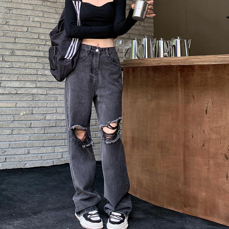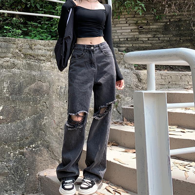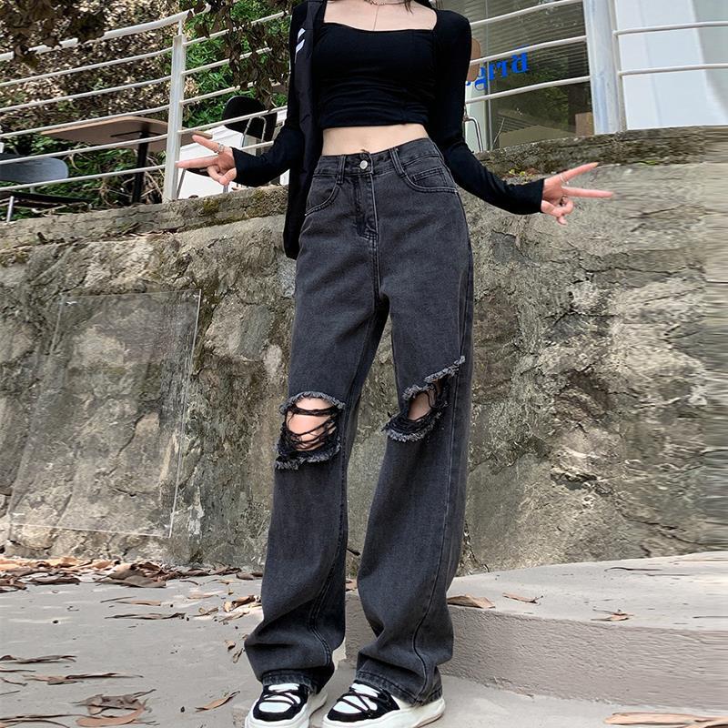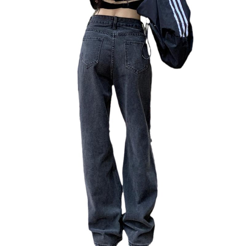 | nameOriginal | Black Ripped Jeans Women's Spring/Summer 2024 New High Waist Pants Loose Dipped High Street Floor Wide Leg Pants |