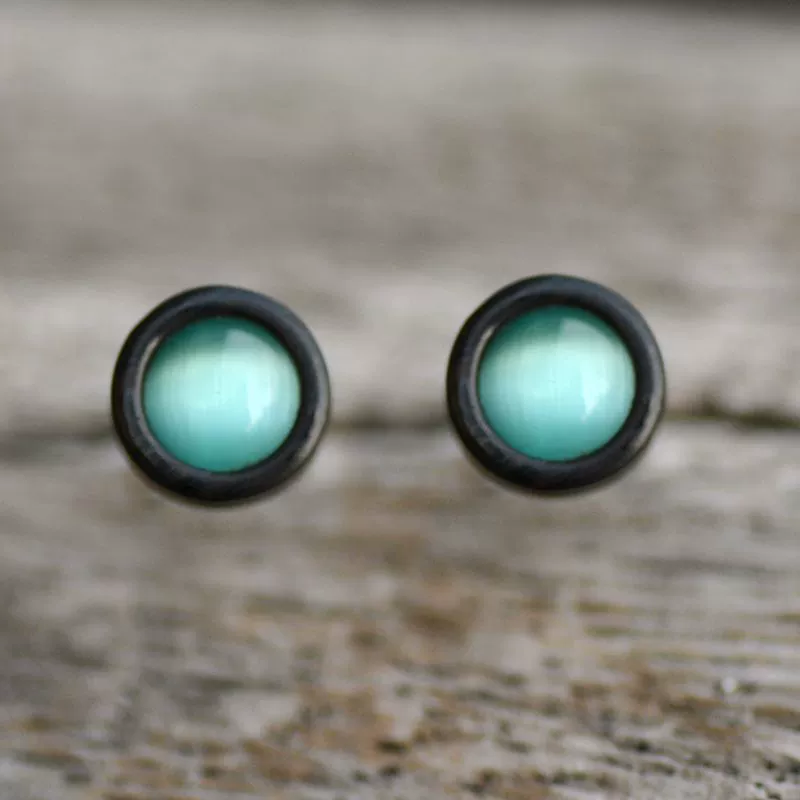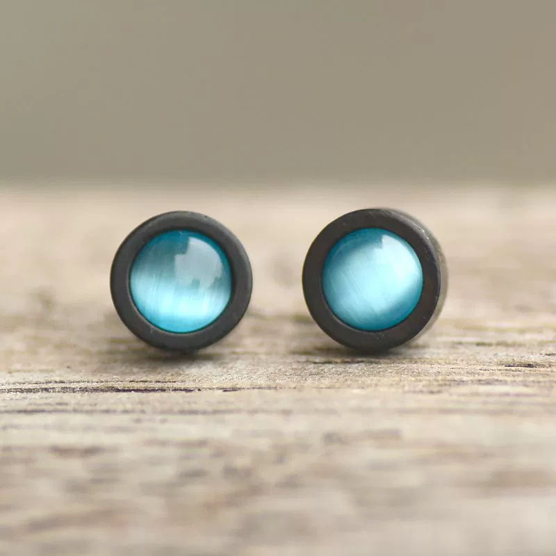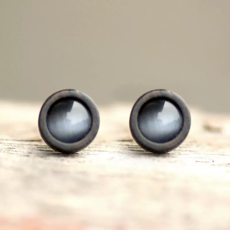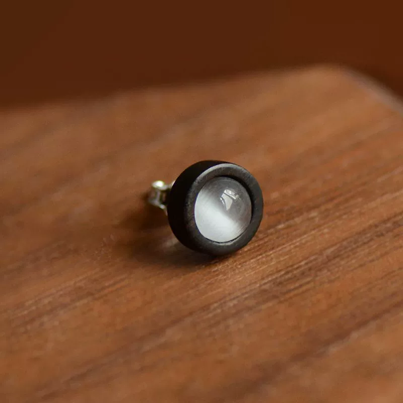 | nameOriginal | Black round cat's eye stone s925 silver needle earrings niche cool high-end unisex style earrings for men and women |