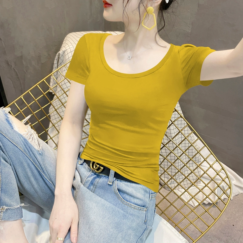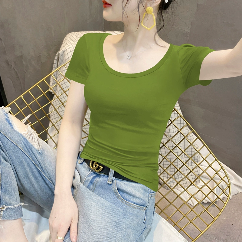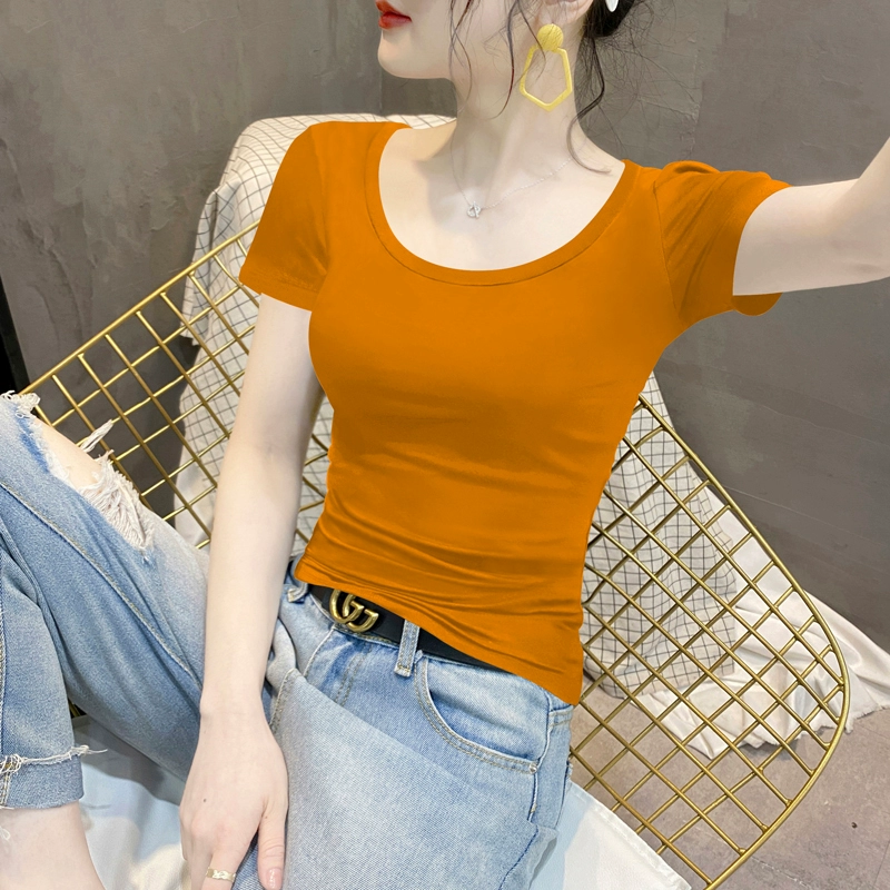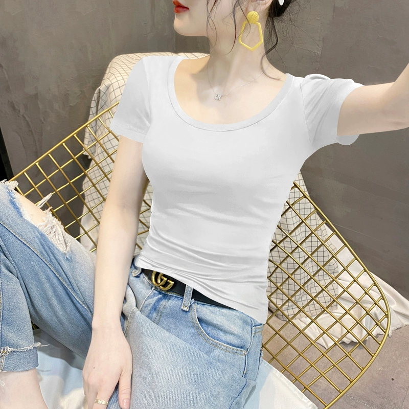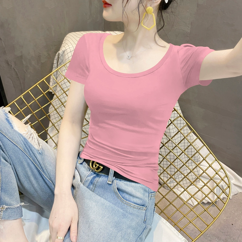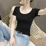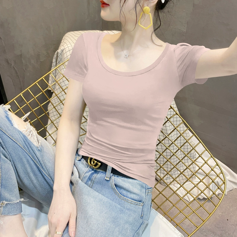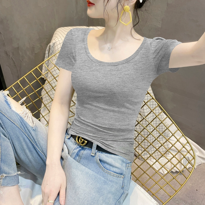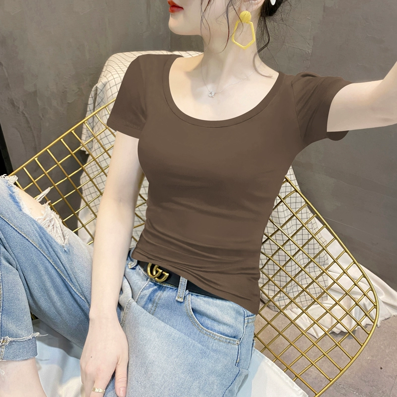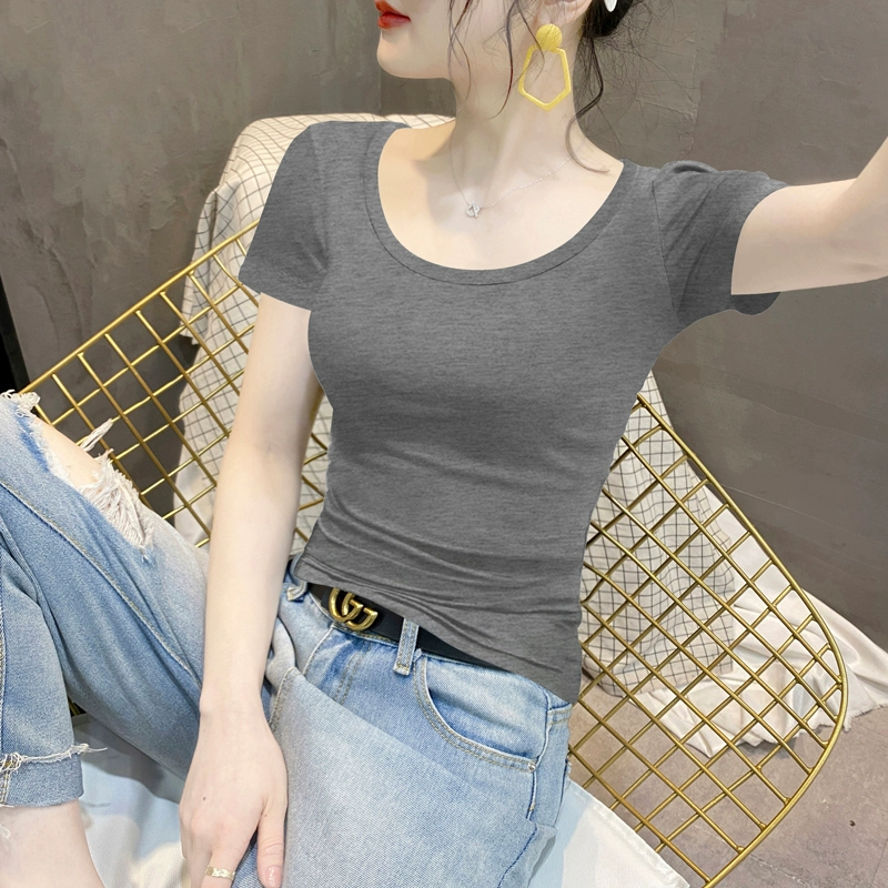 | nameOriginal | Black round neck short-sleeved T-shirt for women 2024 summer new tight-fitting versatile modal bottoming shirt thin top trendy |