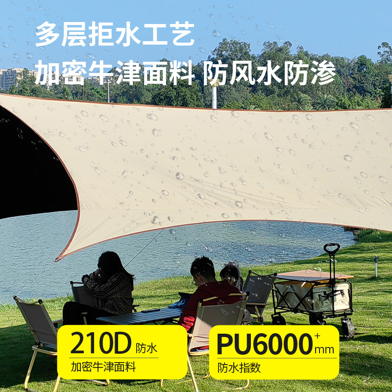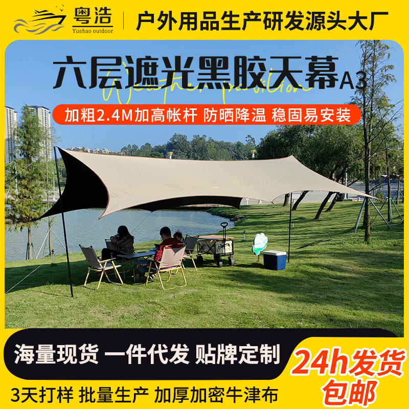 Black Rubber Canopy Camping Tent Outdoor Camping Sunshade Portable Sun Protection Butterfly Hexagon Awning Camping Equipment