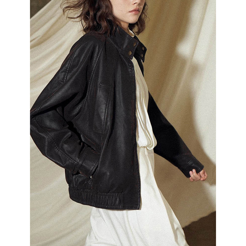 | nameOriginal | "Black rubber leather coat" American retro black plant leather coat female New XI Lan grade a first layer sheepskin 2024 |