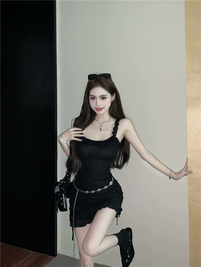 | nameOriginal | Black ruffled summer slim-fitting suspender dress |