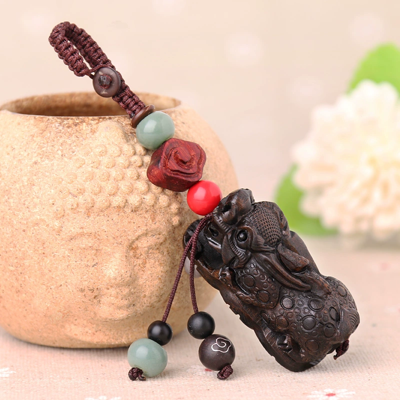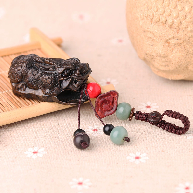 | nameOriginal | Black sandalwood carved Pixiu leather pendant key chain chain hand-woven personality simple creative car waist lock pendant |