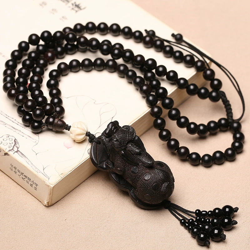 Black sandalwood carved Pixiu Zeng1qing car rearview mirror Buddhist bead jewelry Piqiu hand toy pendant