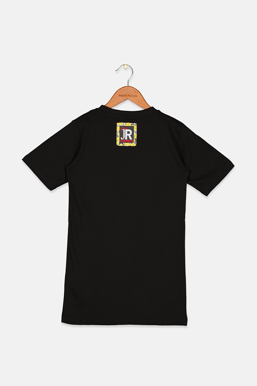 | descriptionOriginal | Care : Machine washable, Ideal For : Boys, Sleeve Length : Short Sleeve, Type of Hem : Straight hem , Type of Neckline & Collar : Crew neckline , Fabrics : 100% Cotton, Occasion : Casual, Pattern & Print : Graphic print, Type of Sleeve : Short sleeve , Types of Closures : Pullover, Color Family : Black, |