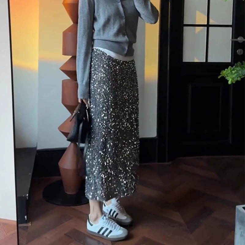 | nameOriginal | Black sequined a-line skirt 2024 spring and autumn new skirt straight hip-hugging skirt small long skirt women's clothing |