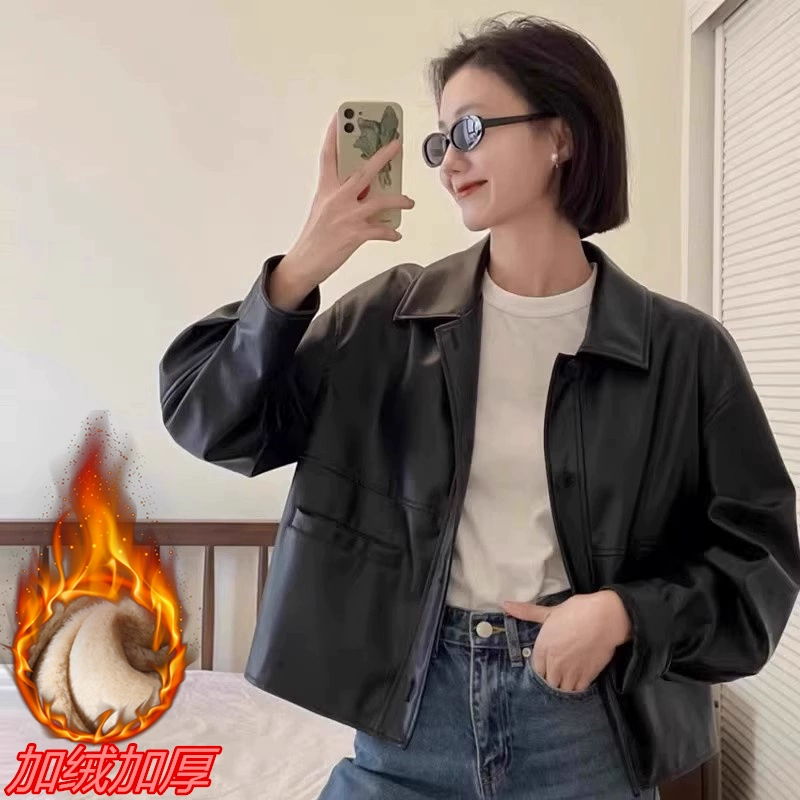 | nameOriginal | Black short autumn and winter Hong Kong style velvet motorcycle leather jacket |