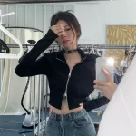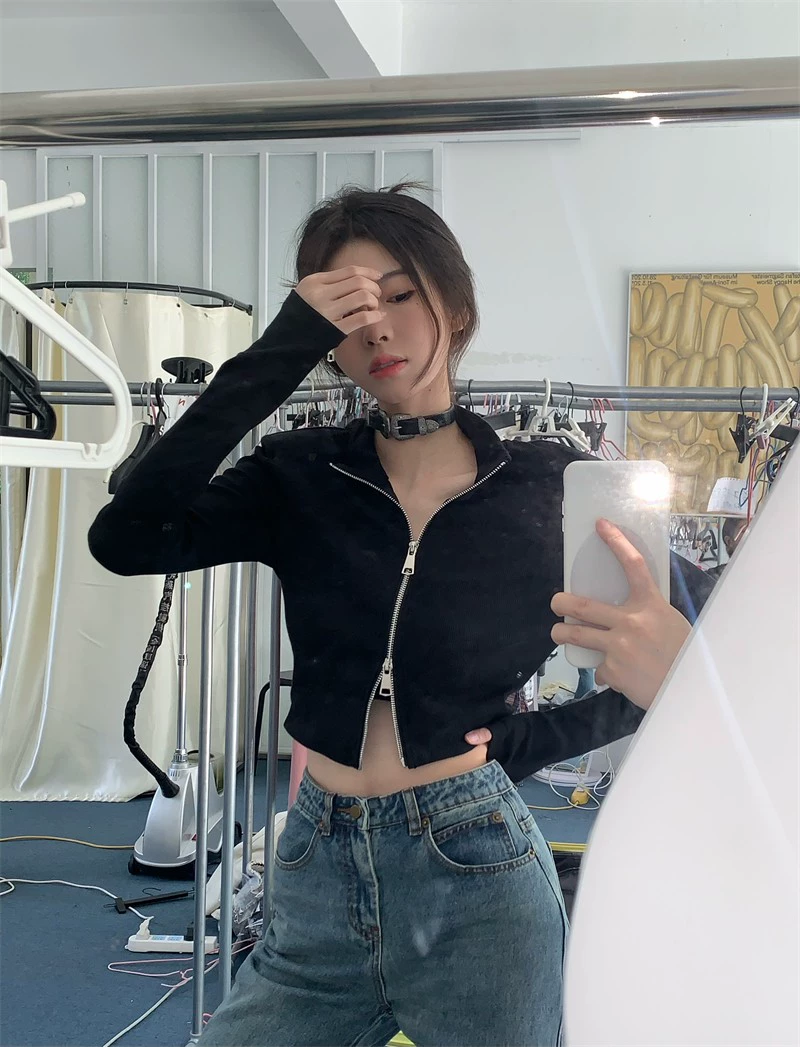 | nameOriginal | Black short double zipper slim fit top jacket |