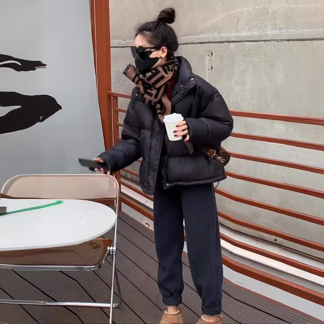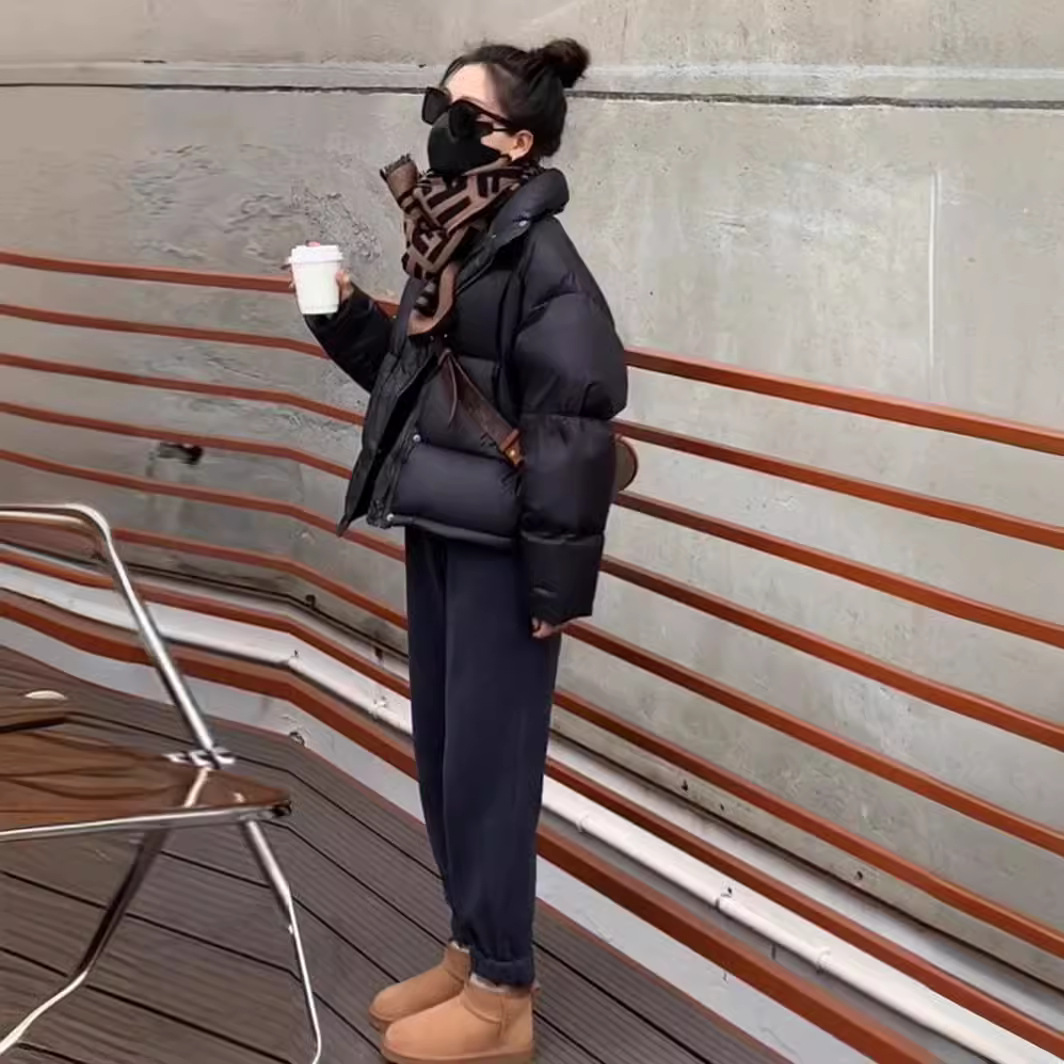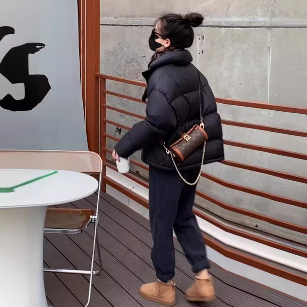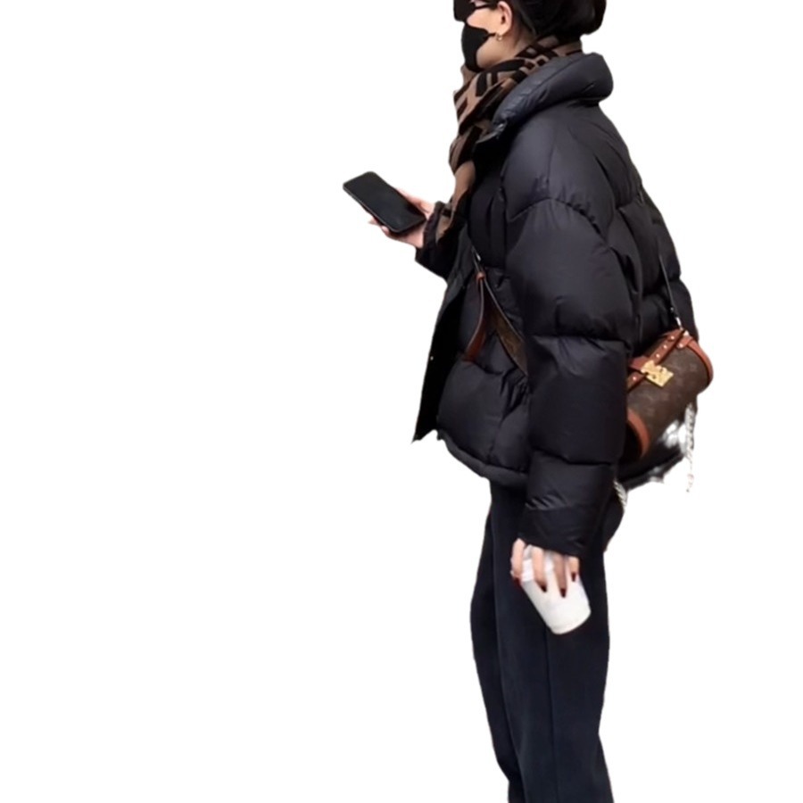 Black short down jacket for women 2023 Winter New loose slimming small white duck down bread coat