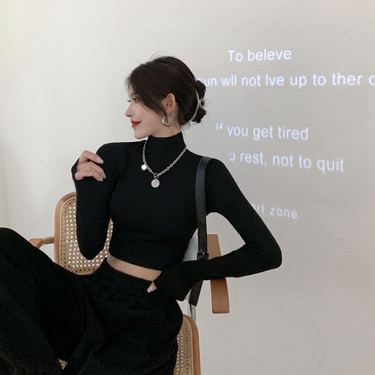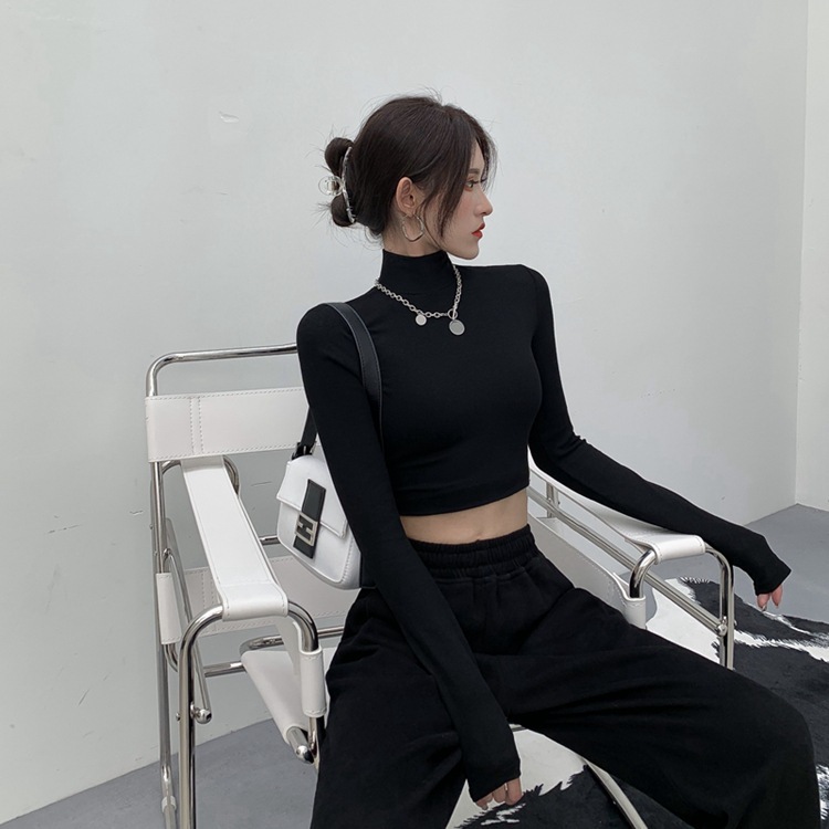 | nameOriginal | Black Short Half-high Collar Base Shirt Women's Long-sleeved Spring and Autumn Inner Tight Cotton Slim-fit Giant Slim-fit Cropped Top |