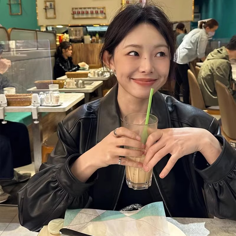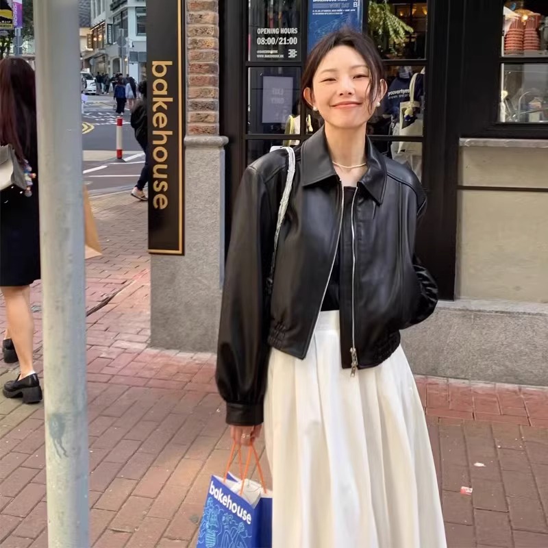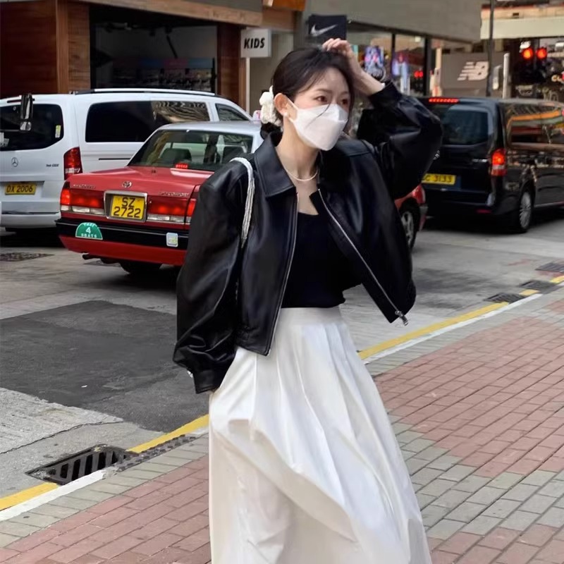 | nameOriginal | Black Short PU Leather Coat Women's Jacket 2024 New Hong Kong Style Design American Style Retro Small |
