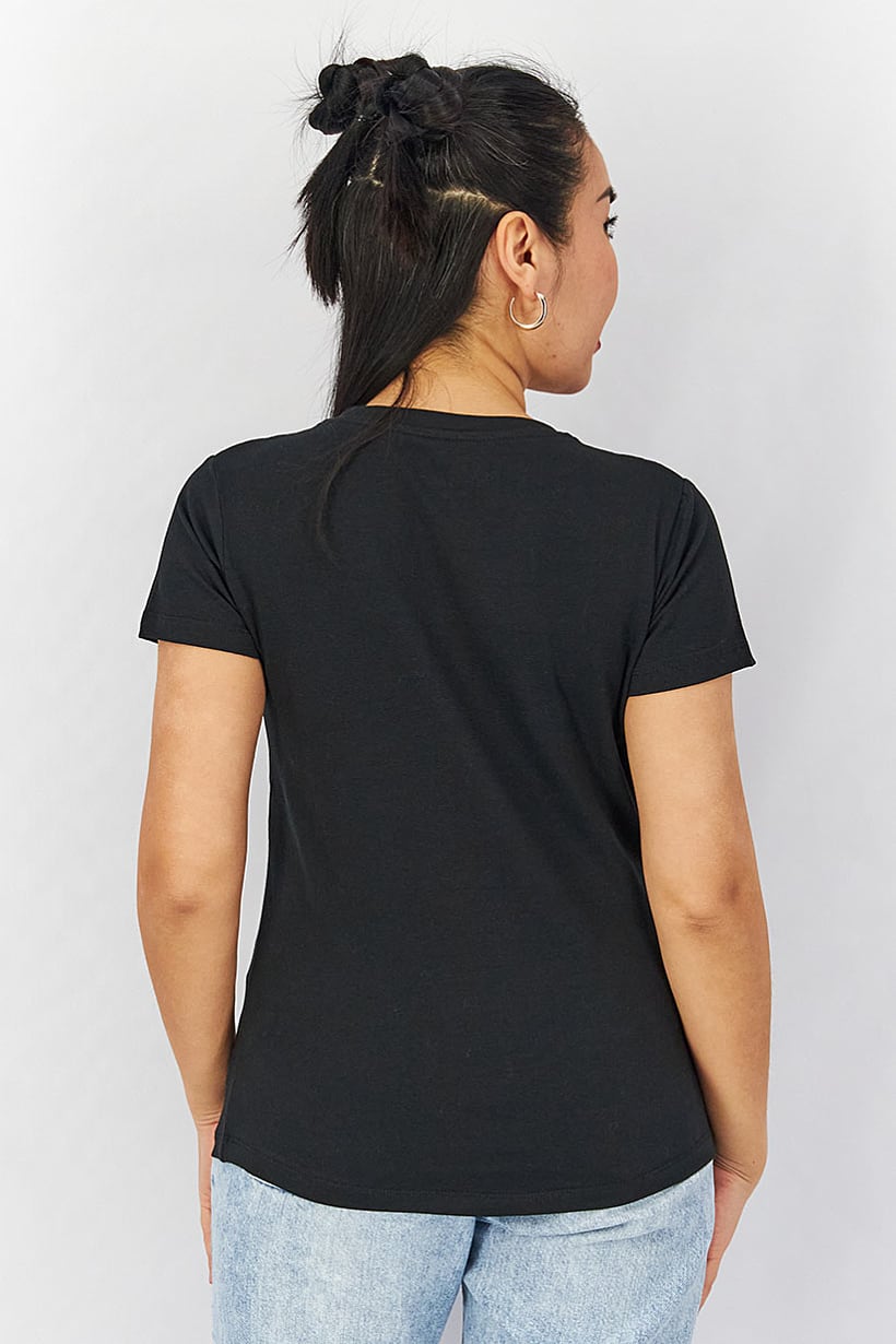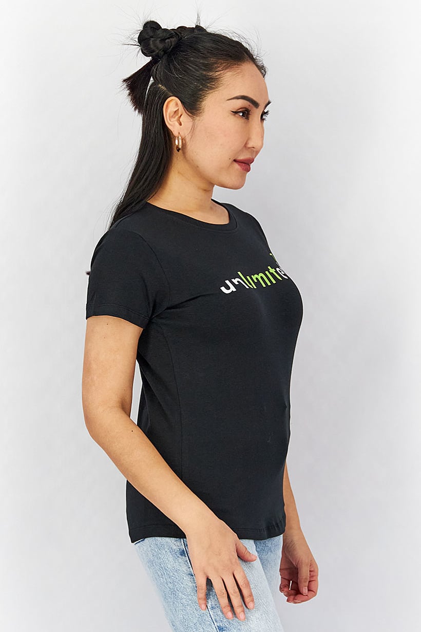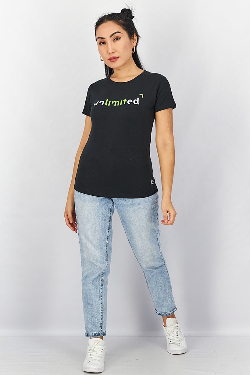 | descriptionOriginal | Care : Machine washable, Fit : Sportswear Fit, Ideal For : Women, Size shown : International, Sleeve Length : Short Sleeve, Thickness : Light, Type of Sport : Training, Types of Hem : Straight hem, Types of Neckline & Collar : Crew neckline, Types of Sleeve : Short sleeve, Disclaimer : Product color may slightly vary due to photographic lighting sources or your monitor settings., Fabrics : 95% Cotton, 5% Spandex, Occasion : Sport, Pattern & Print : Graphic print, Sportswear Type : T-Shirt, Types of Closures : Pullover, Color Family : Black, |