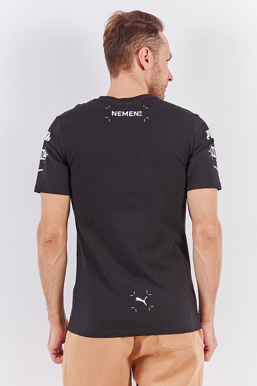 This product is made of 100% cotton and is suitable for machine washing. It has a sportswear fit and is designed for outdoor activities. The t-shirt is light in thickness and features the brand logo as its pattern and print. The color of the product may slightly vary due to photographic lighting sources or monitor settings. The size shown is international and the color family is black.