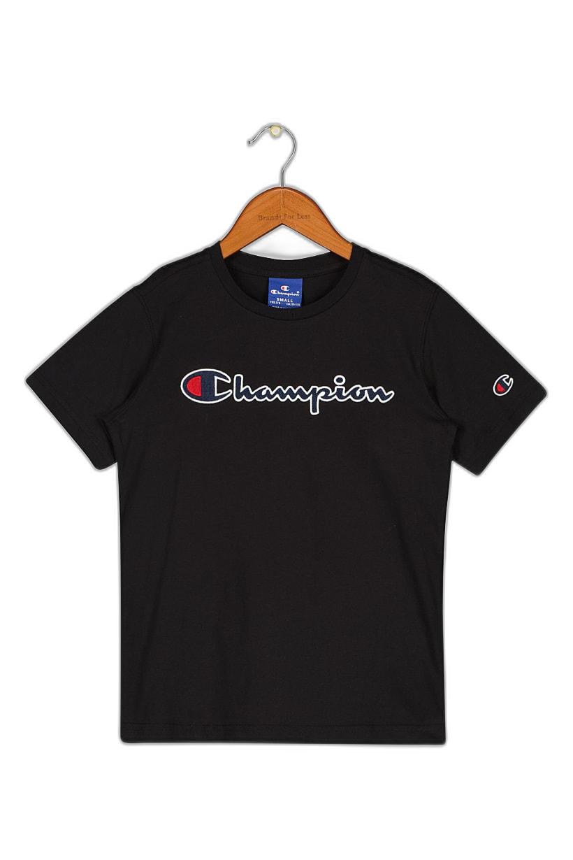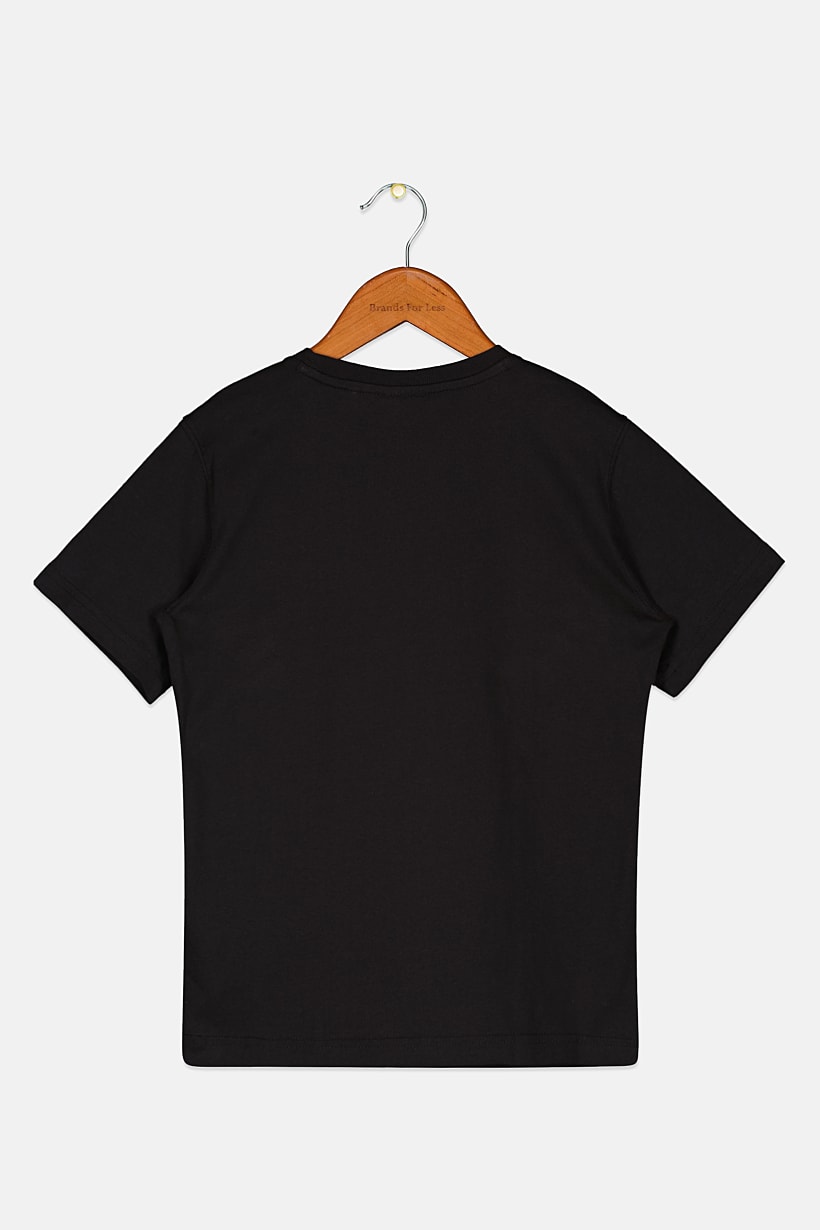 Black Short Sleeve T-Shirt with Embroidered Brand for Boys.