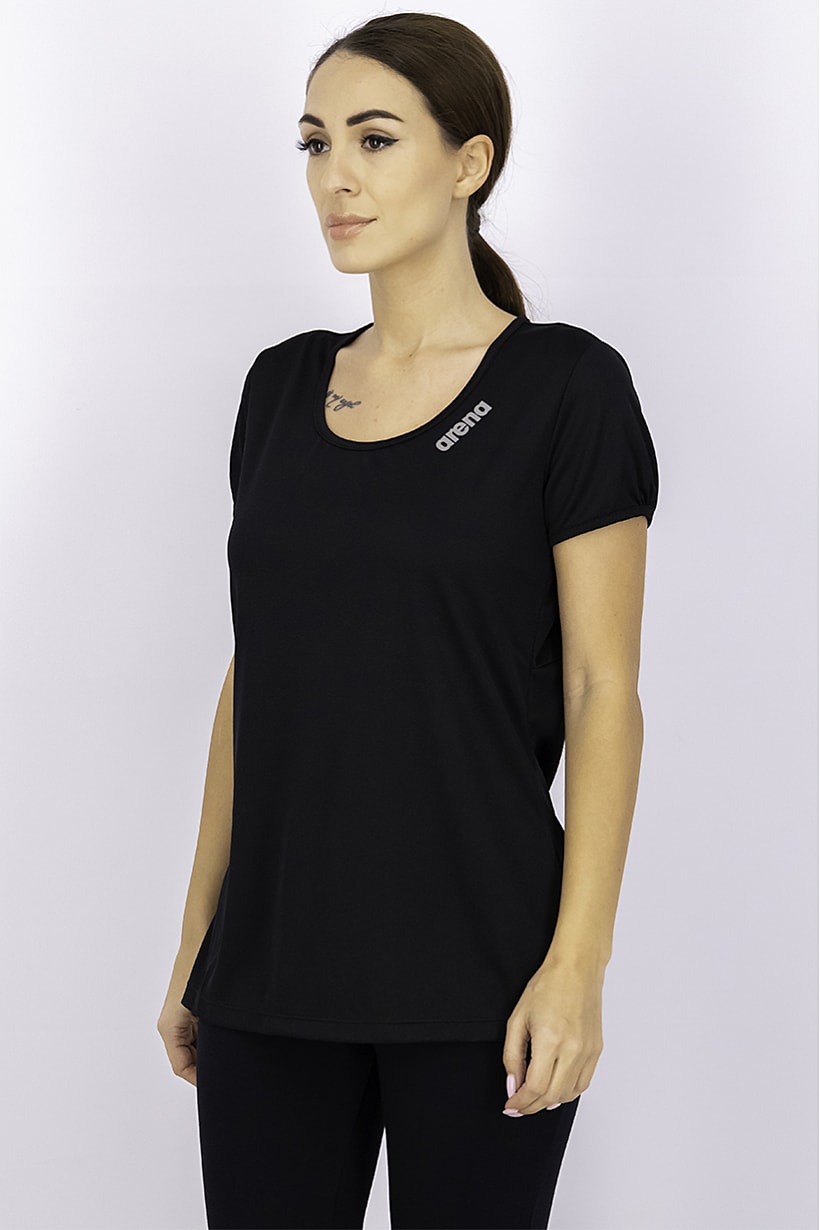 | descriptionOriginal | Bottom Hem : Straight, Care : Machine washable, Fit : Sportswear Fit, Ideal For : Women, Size shown : US, Thickness : Light, Type of Sport : Training, Types of Hem : Straight hem, Types of Neckline & Collar : Scoop neckline, Types of Sleeve : Short sleeve, Disclaimer : Product color may slightly vary due to photographic lighting sources or your monitor settings., Fabrics : 100% Polyester, Pattern & Print : Brand Logo, Sportswear Type : Tops, Types of Closures : Pullover, Color Family : Black, |