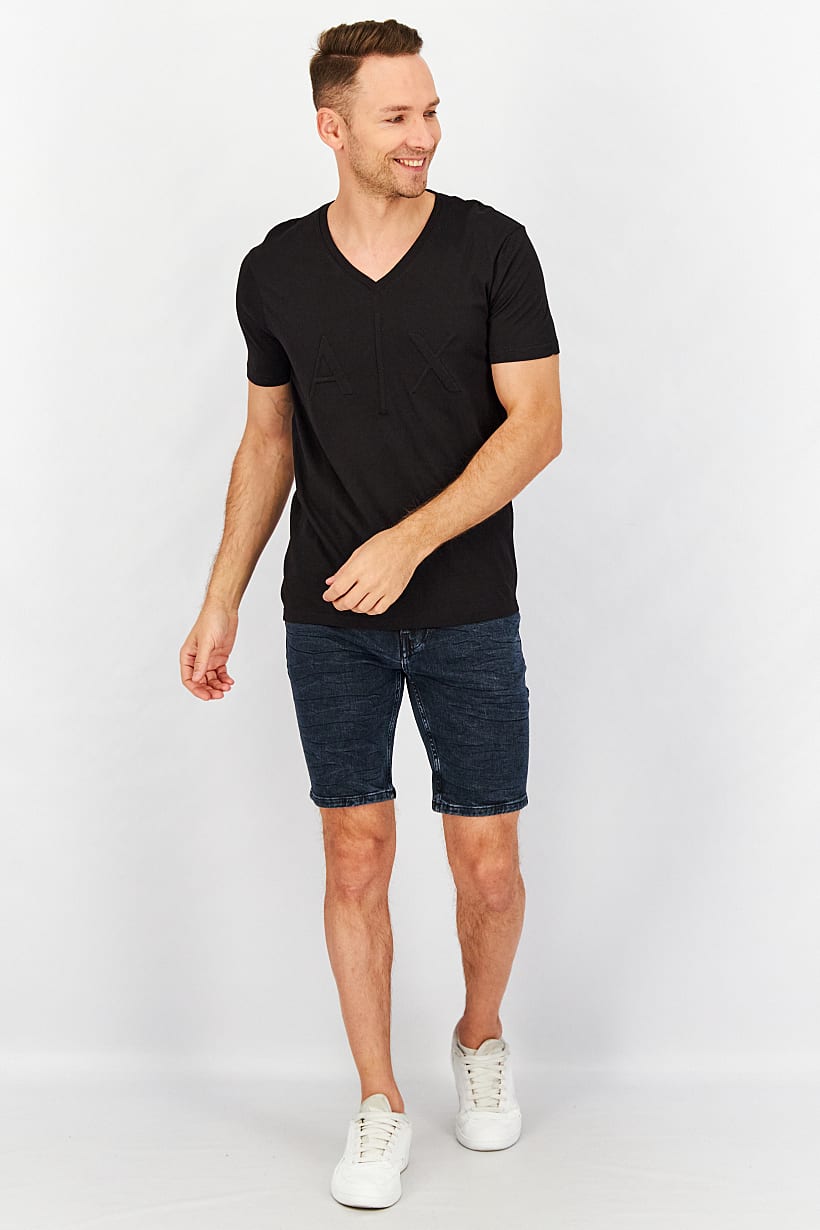 Care : Machine washable, Fit : Slim fit, Ideal For : Men, Size shown : International, Sleeve Length : Short Sleeve, T-Shirt Style : V- Neck, Types of Hem : Straight hem, Types of Neckline & Collar : V-neckline, Types of Sleeve : Short sleeve, Disclaimer : Product color may slightly vary due to photographic lighting sources or your monitor settings., Fabrics : 100% Cotton, Occasion : Casual, Pattern & Print : Brand Logo, Types of Closures : Pullover, Color Family : Black,