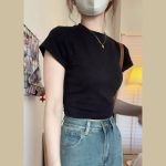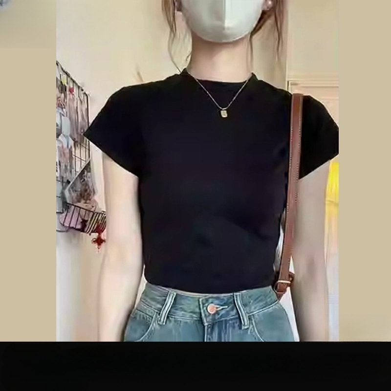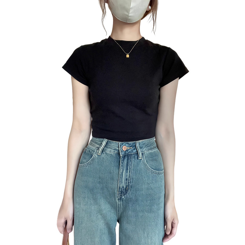 | nameOriginal | Black Short-sleeved Slim-fit T-shirt Women's Summer 2024 New Explosive Short Waist Covering Belly Slimming Flesh Covering Top |