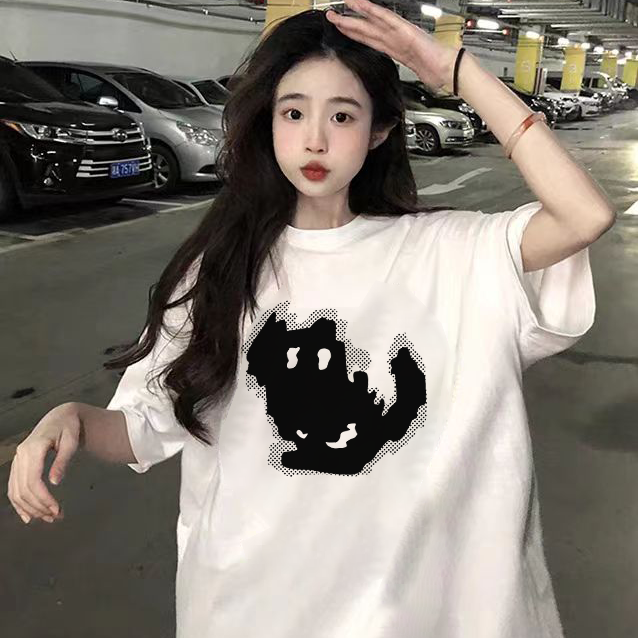 | nameOriginal | Black short-sleeved T-shirt for women loose 2024 summer new ins trendy half-sleeved loose BF style versatile pure cotton top |