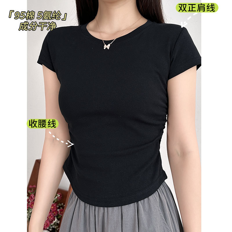 | nameOriginal | Black Short-sleeved T-shirt Women's Summer 2024 New Round Neck Design Sense Slim-fit Slimming Spice Girls Short Shoulder Top |