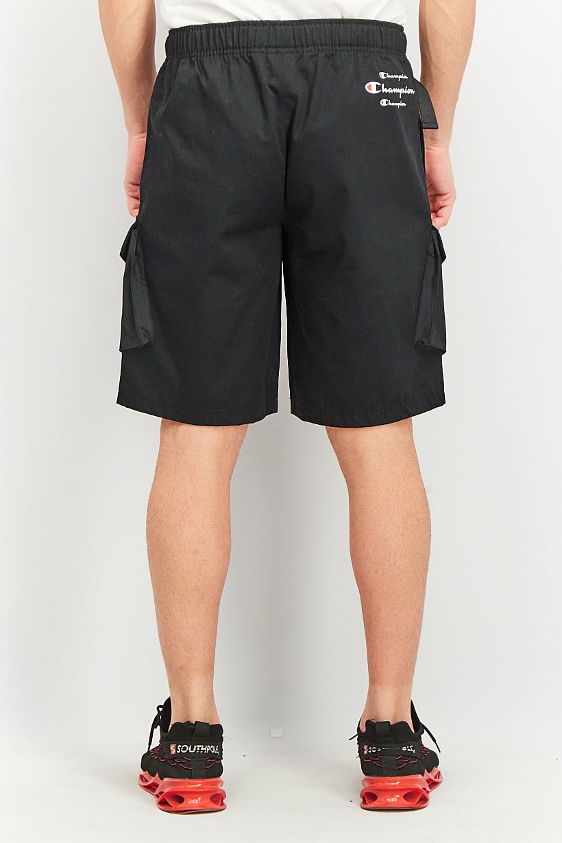 Care : Machine washable, Fit : Regular fit, No of pockets : 4, Size shown : International, Stretch Type : Stretchable, Type of Short : Basic short, Bottom Closure : Pull on, Fabrics : 65% Polyester, 35% Cotton, Occasion : Casual, Pattern & Print : Embroidered logo, Color Family : Black,