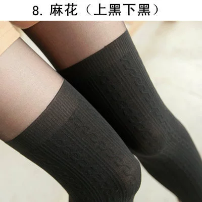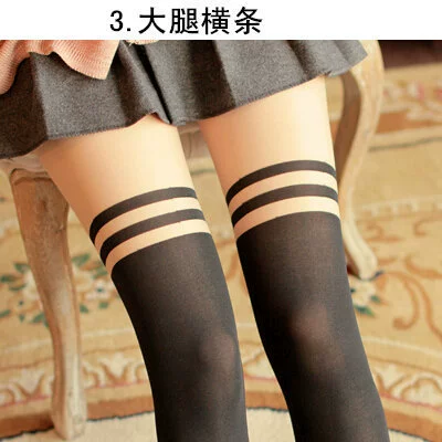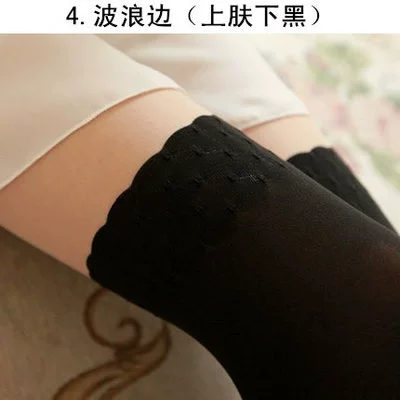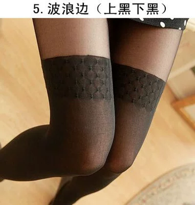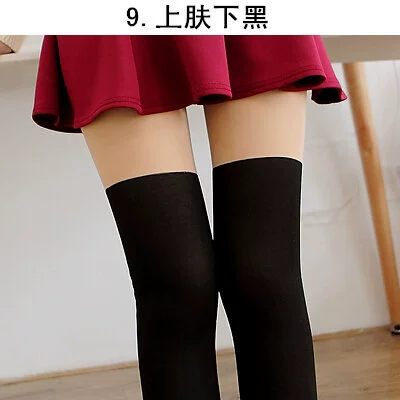 Black silk spliced ​​stockings thin Japanese style fake high pantyhose over the knee long stockings for women JK pure white silk