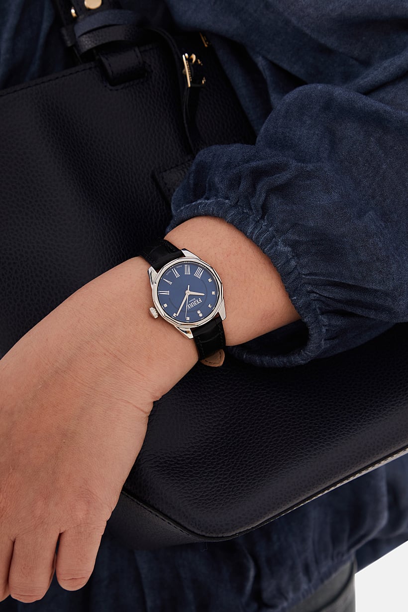 | sub_Categories | Accessories, Watches, women fm1l184l0011 leather watch black silver navy |