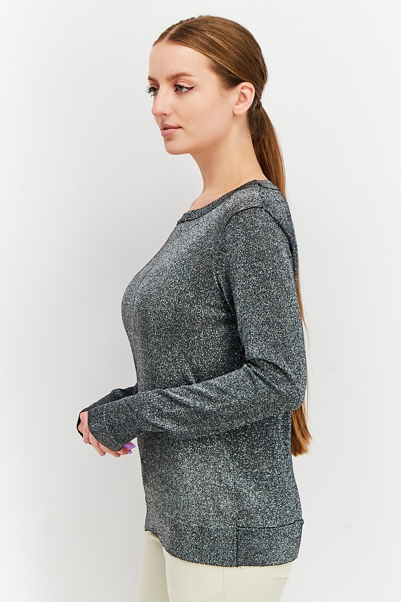 | nameOriginal | Women Mock Neck Open Back Long Sleeves Metallic Tops, Black/Silver |