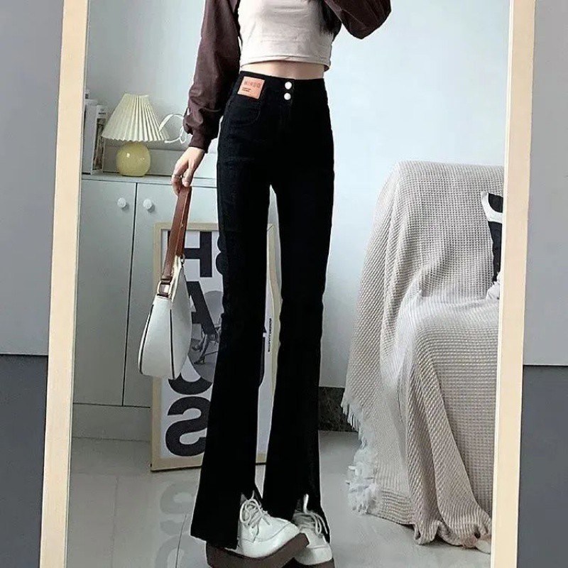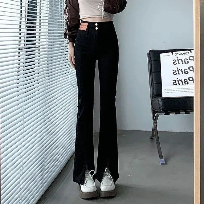 | nameOriginal | Black skinny jeans for women 2023 spring and summer new high waist slimming stretch split mop micro flared pants |