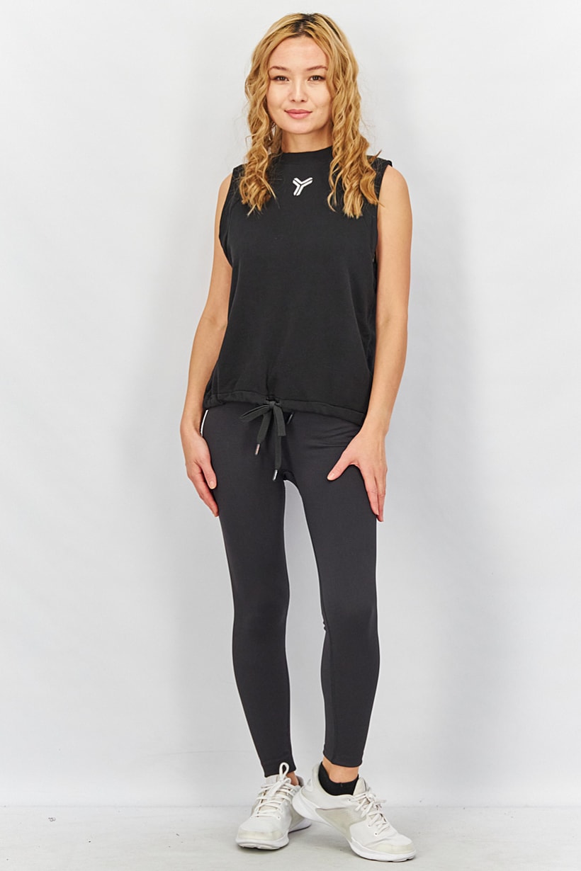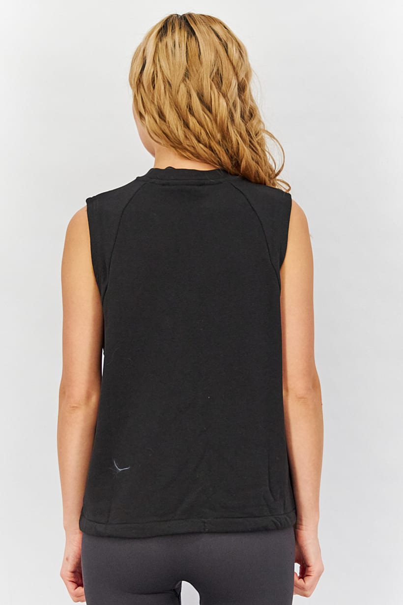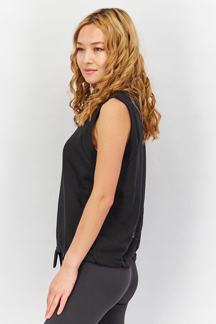 Bottom Hem : Tie Hem, Care : Machine washable, Fit : Sportswear Fit, Ideal For : Women, Size shown : International, Type of Sport : Training, Types of Hem : Tie hem, Types of Neckline & Collar : Crew neckline, Types of Sleeve : Sleeveless, Fabrics : 100% Cotton, Occasion : Sport, Pattern & Print : Plain/Solid, Sportswear Type : Tops, Color Family : Black,