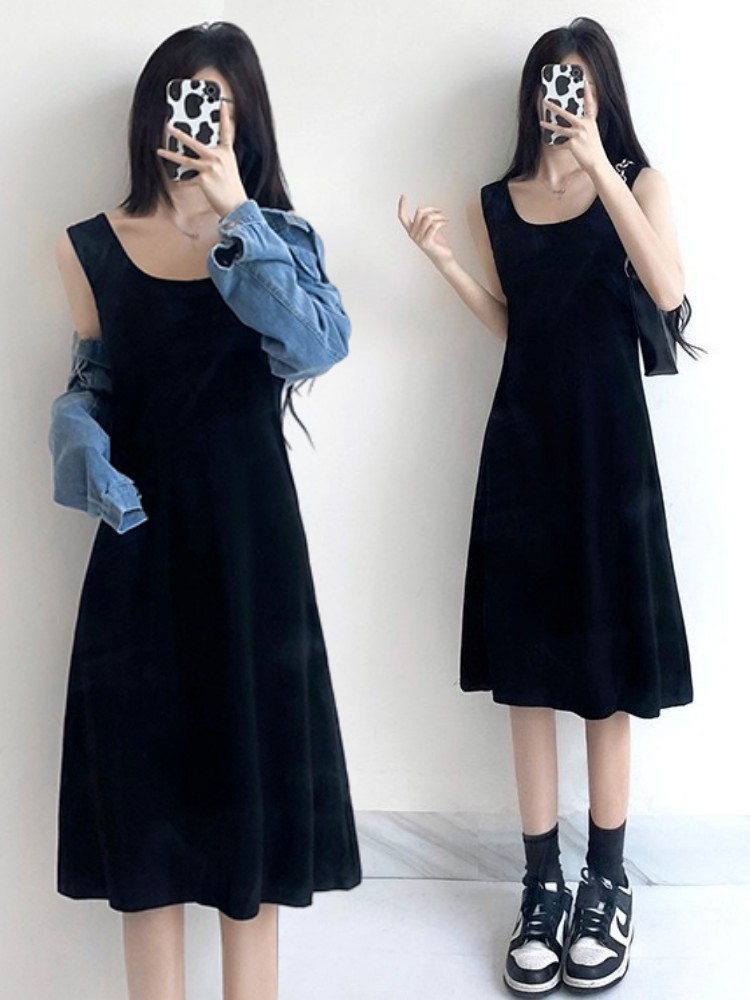 | nameOriginal | Black sleeveless summer outerwear a-line skirt vest suspender |