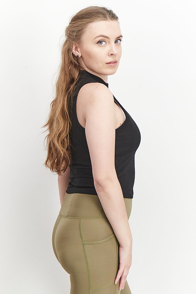 Black Sleeveless Tank Top with Logo Print for Women’s Sports Wear.