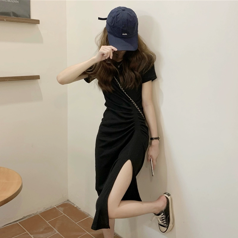 | nameOriginal | Black slim fit hip-hugging spring slit dress |