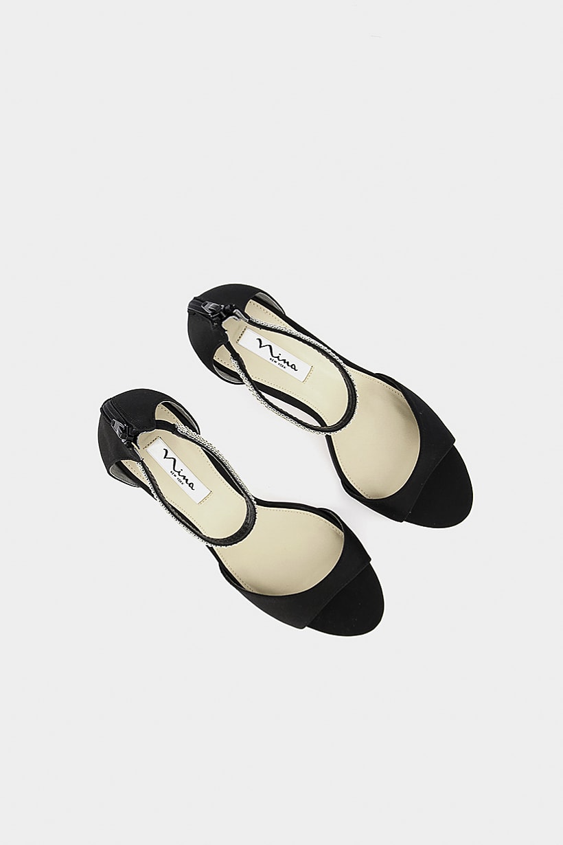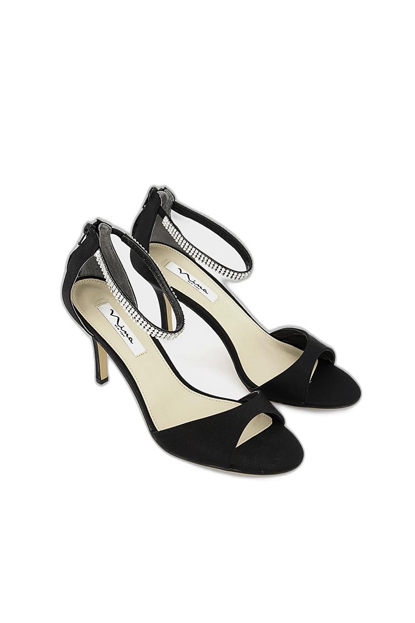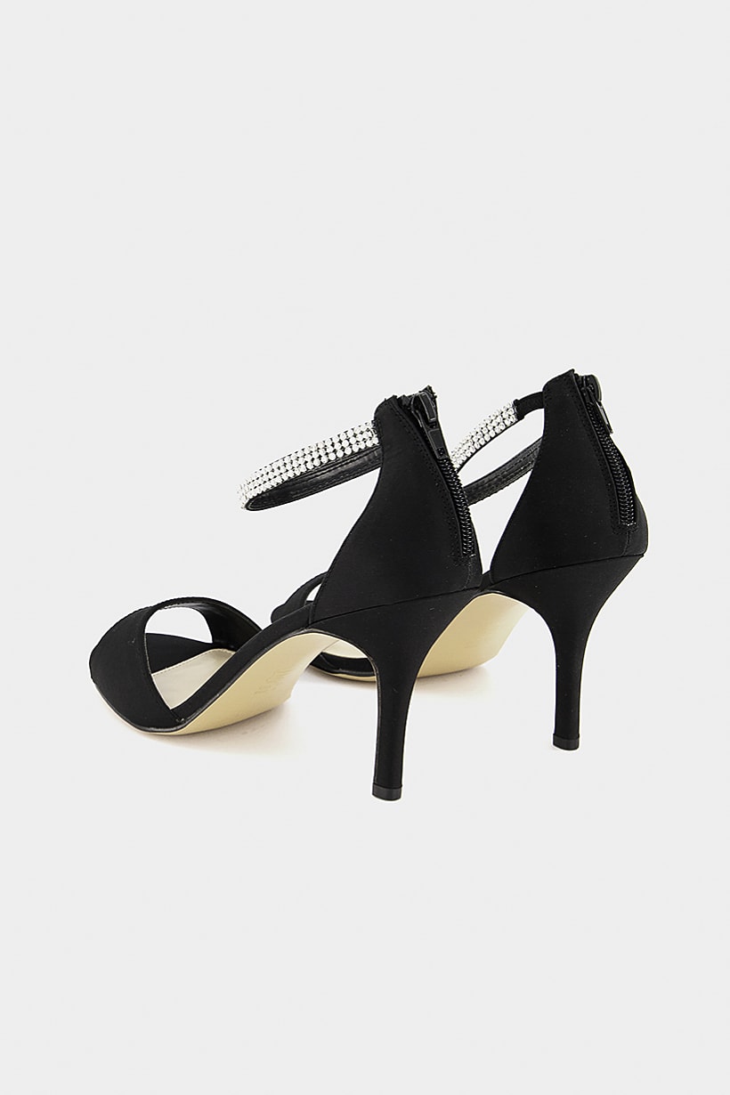 Ideal For : Women, Disclaimer : Product color may slightly vary due to photographic lighting sources or your monitor settings., Embellished : Rhinestone, Occasion : Semi Formal, Heel Height : 4" / 10 cm, Shoe Closure : Adjustable buckle closure, Heel Style : Stiletto heel, Toe Style : Open toe, Sole Material : Synthetic sole, Shoe Material : Fabric, Color Family : Black,