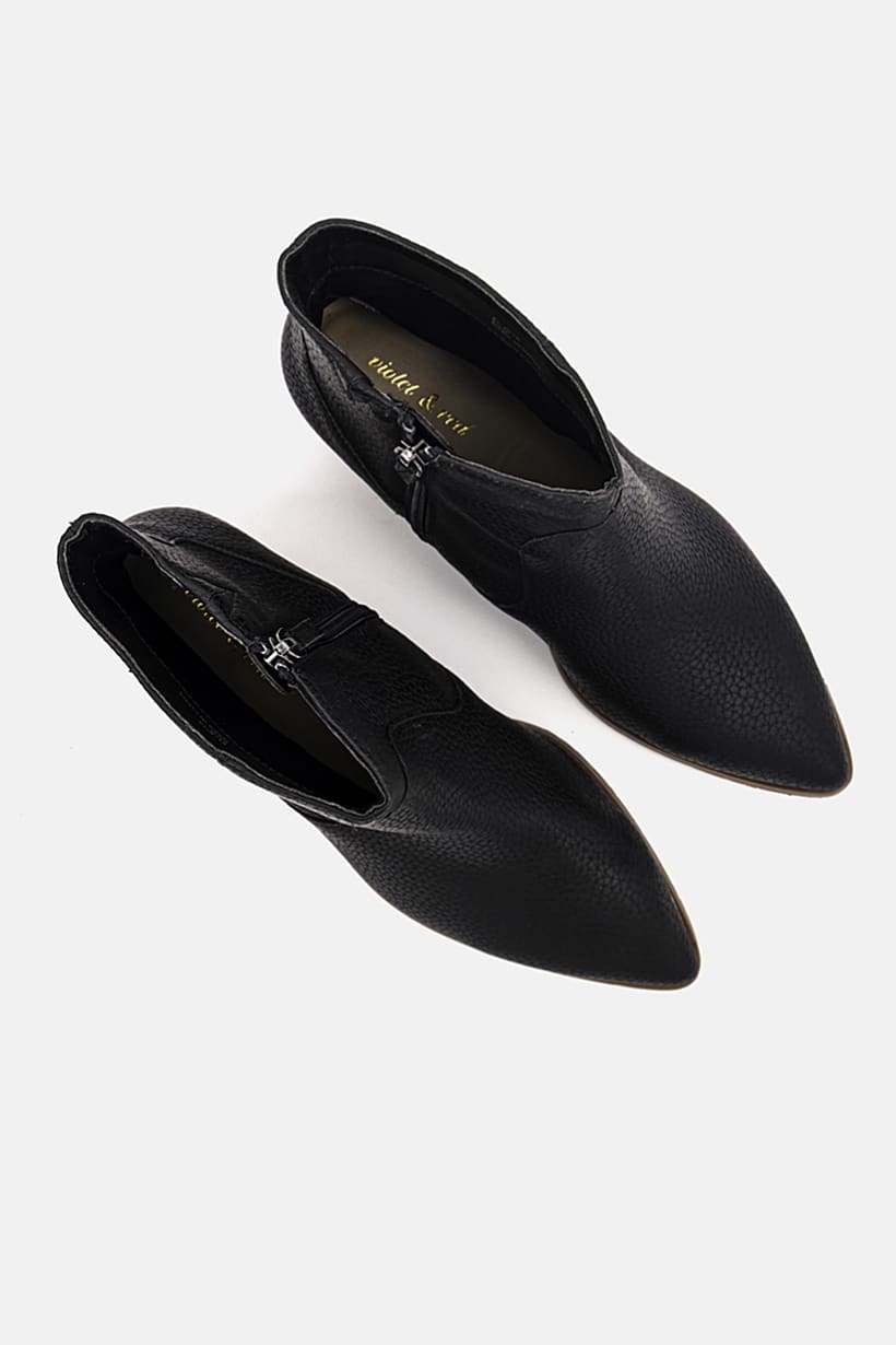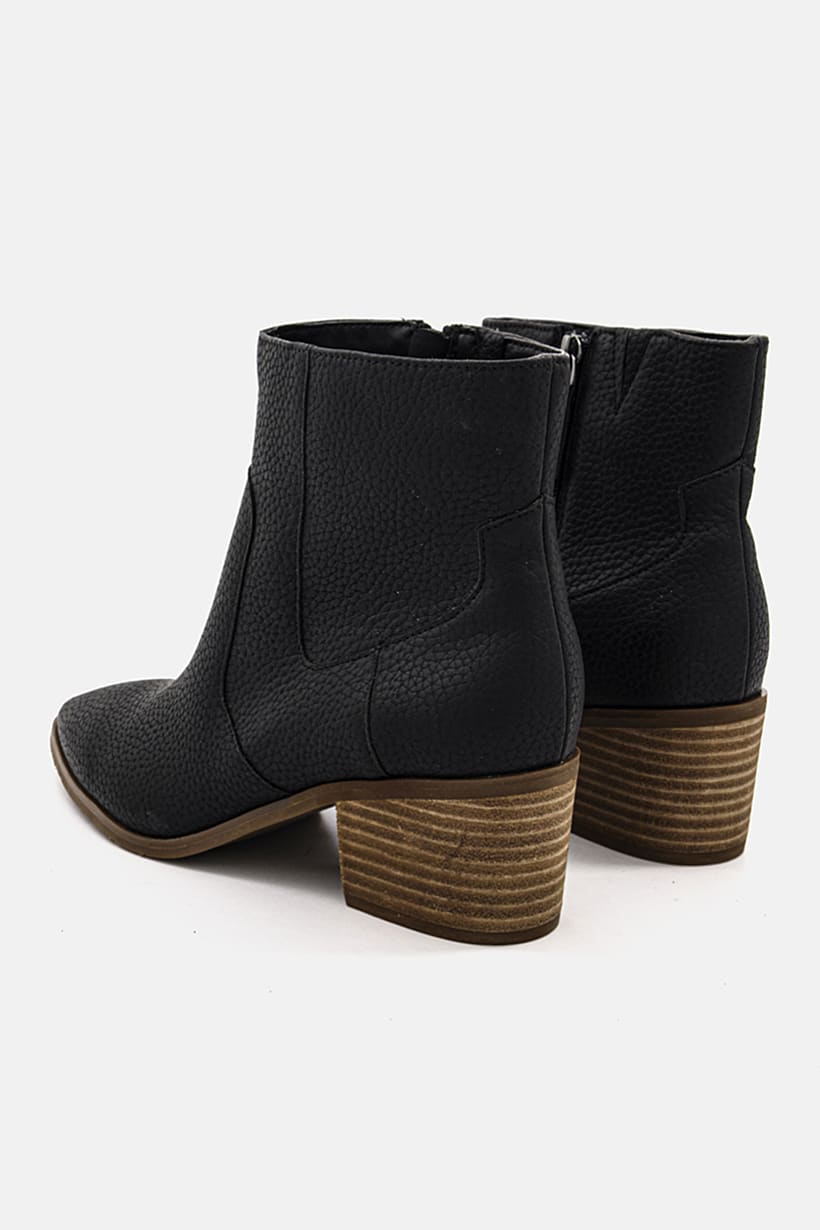 Heel Height : 2.5" / 6.3 cm, Heel Style : Block heel, Ideal For : Women, Shoe Closure : Zipper closure, Shoe Width : Medium, Sole Material : Rubber sole, Style : Ankle Boot, Toe Style : Pointed toe, Disclaimer : Product color may slightly vary due to photographic lighting sources or your monitor settings., Occasion : Casual, Shoe Material : Leather, Color Family : Black,