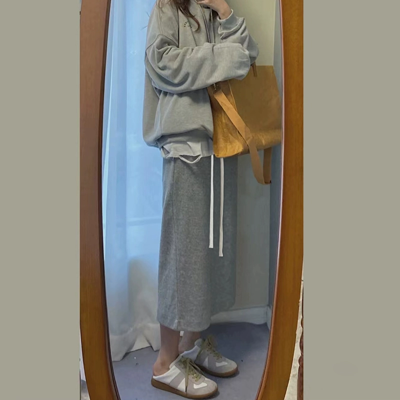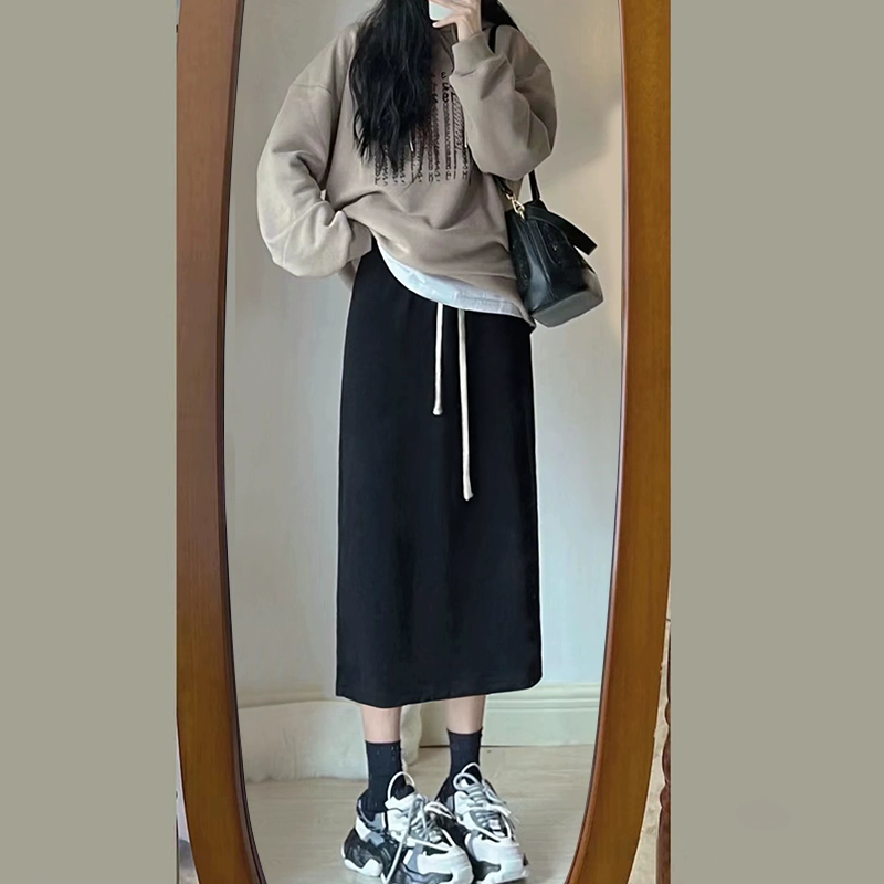 | nameOriginal | Black slit hip-covering straight mid-length skirt |