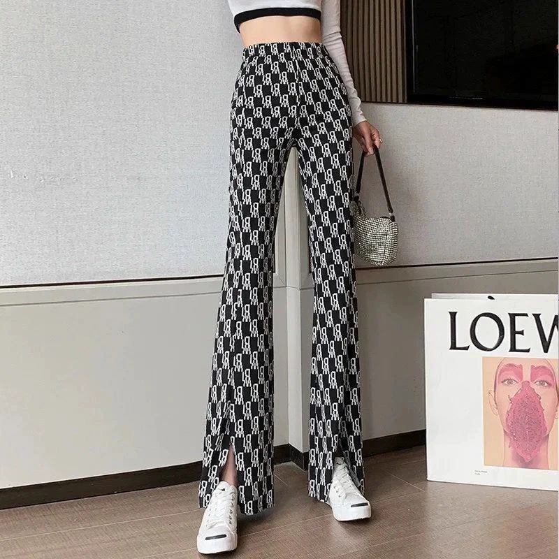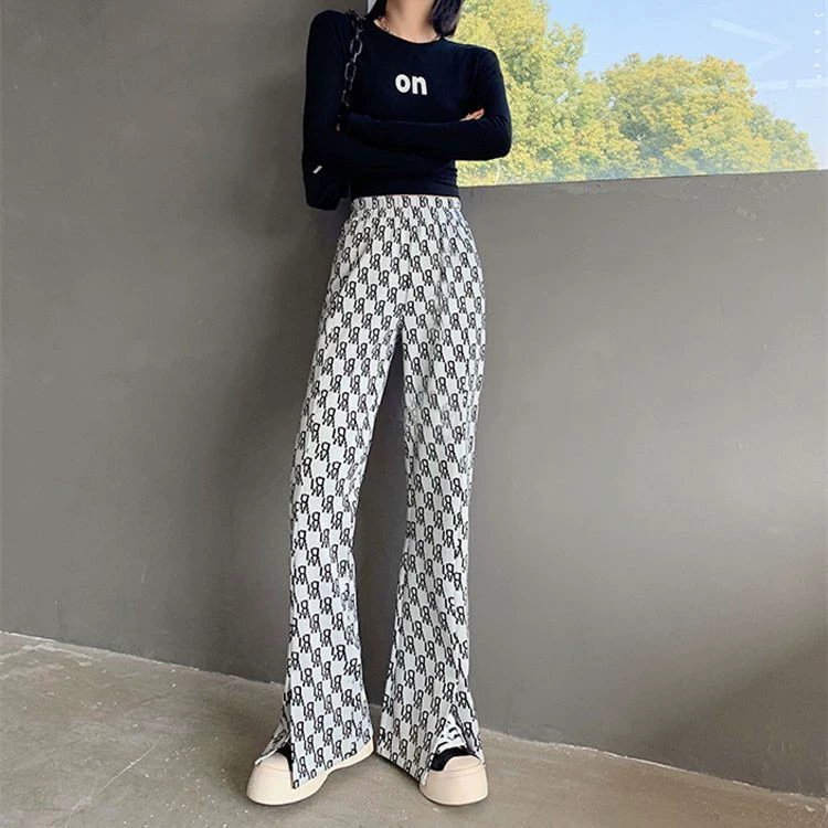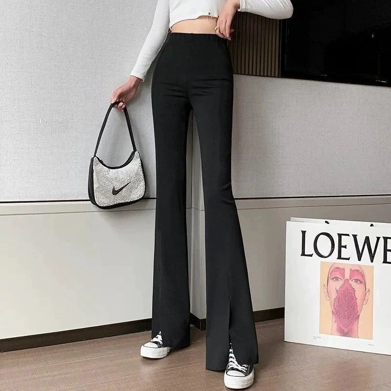 | nameOriginal | Black Slit Ice Silk Pants Women's Summer Thin Style New Hot Style High Waist Tight Slim Floor-length Slightly Flared Pants Trendy |