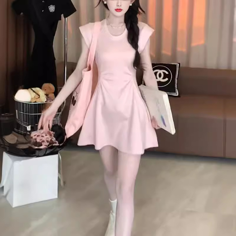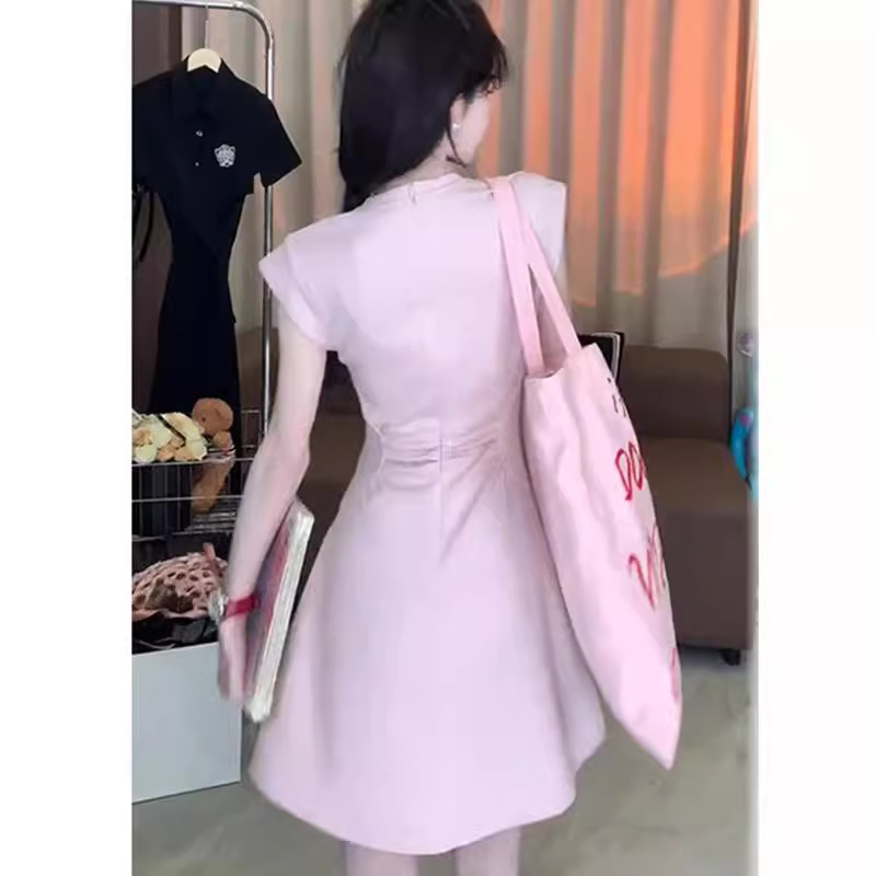 | nameOriginal | Black Small Flying Sleeve dress Women's Summer 2024 New Design Pleated Waist Slimming Western Style A- line Skirt |