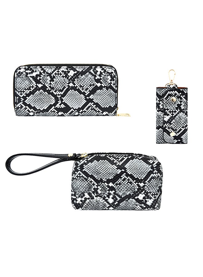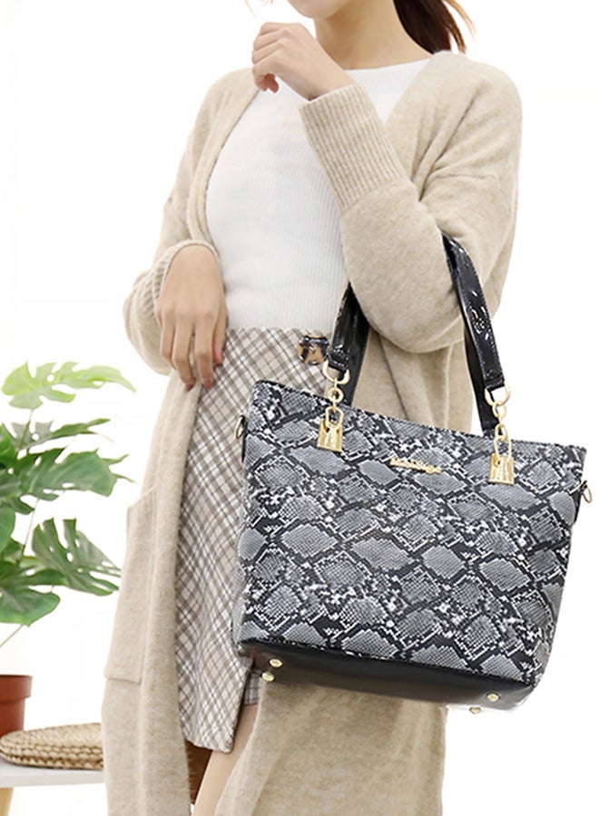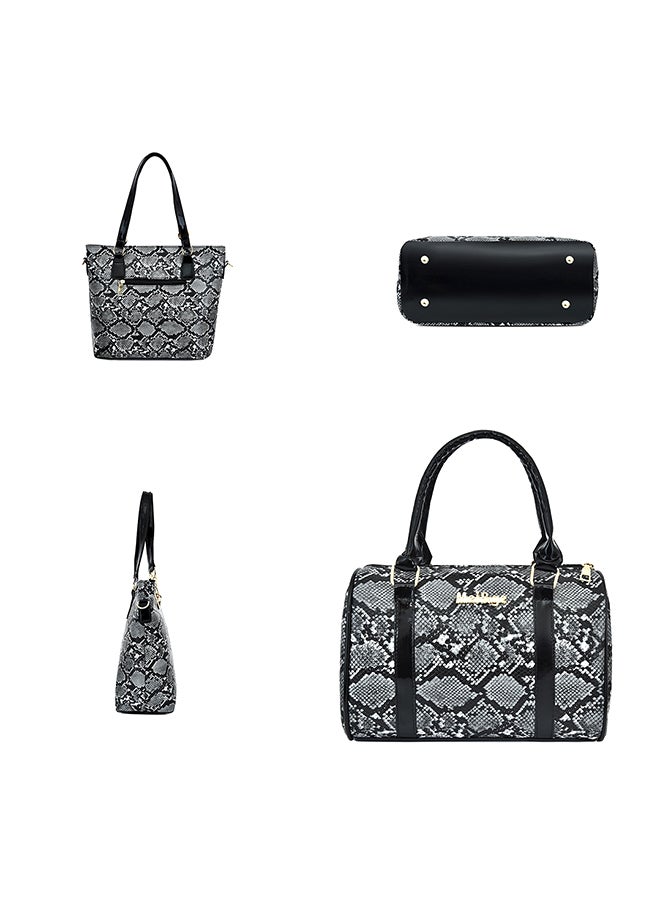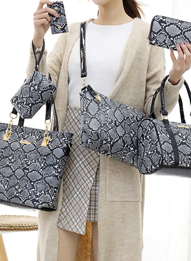 Black Snake Print Bag Set with 6 Pieces in European and American Style.