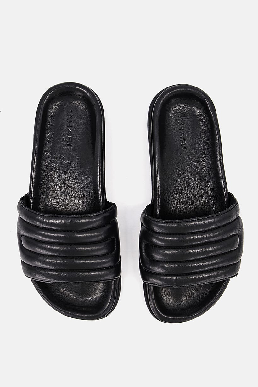 Black Soft Volume Slide Sandals for Men, Slip-On.