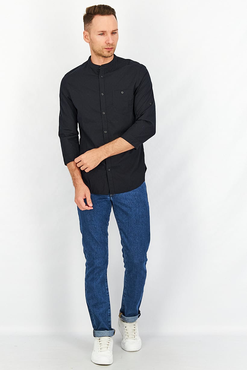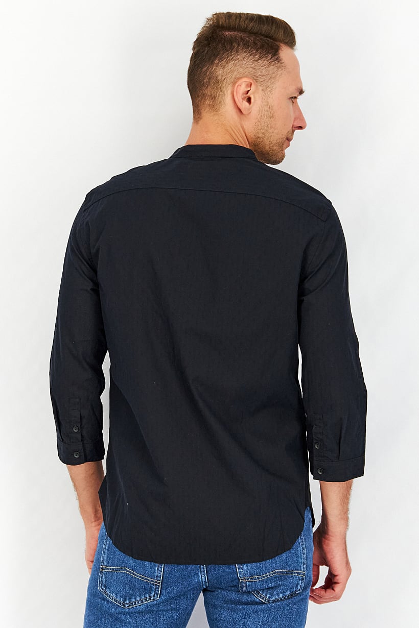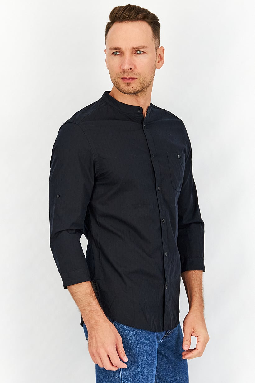 | descriptionOriginal | Care : Hand wash, Fit : Slim fit, Size shown : International, Sleeve Length : Long Sleeve, Types of Hem : Straight hem, Disclaimer : Product color may slightly vary due to photographic lighting sources or your monitor settings., Fabrics : 100% Cotton, Occasion : Casual, Pattern & Print : Plain/Solid, Types of Closures : Button, Color Family : Black, Types of Neckline & Collar : Mandarin collar, |