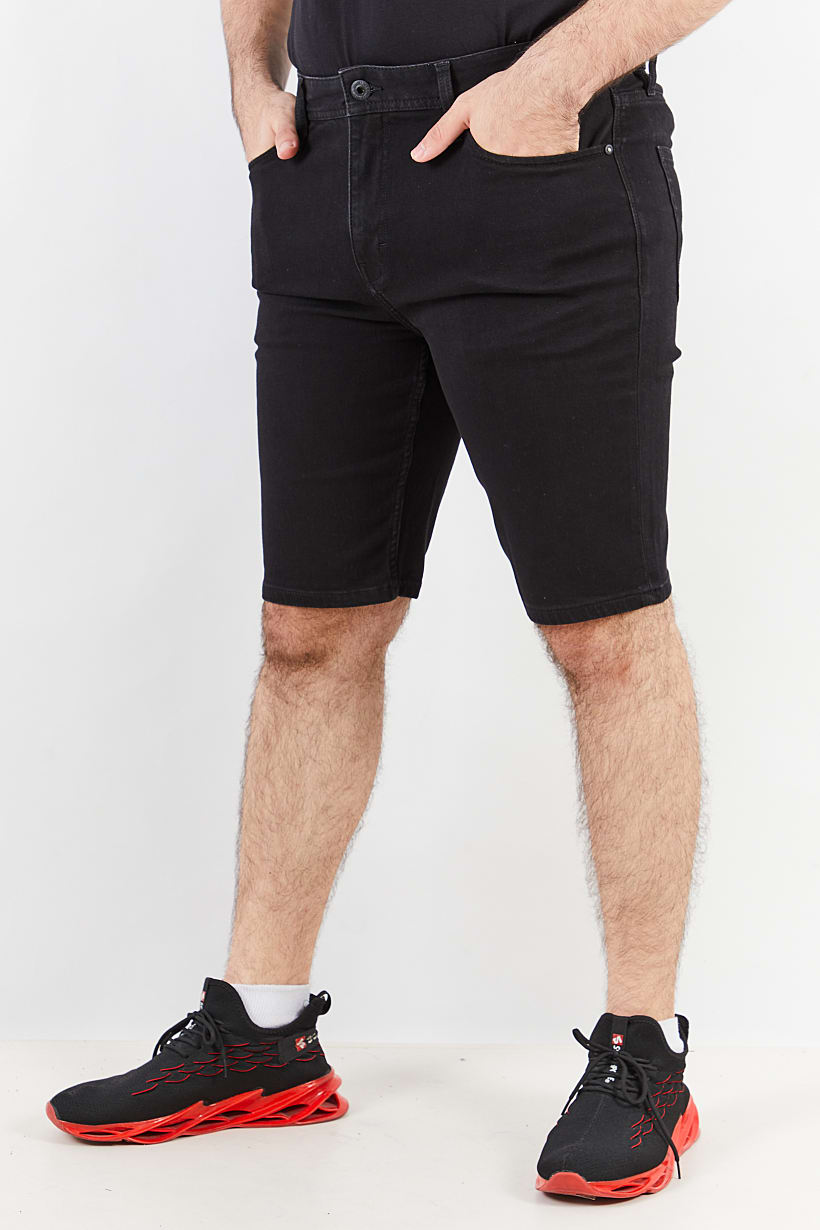 Care : Machine washable, Fit : Tapered, No of pockets : 5, Size shown : International, Stretch Type : Stretchable, Type of Short : Denim short, Bottom Closure : Button, Fabrics : 99% Cotton, 1% Elastane, Occasion : Casual, Pattern & Print : Plain/Solid, Color Family : Black,