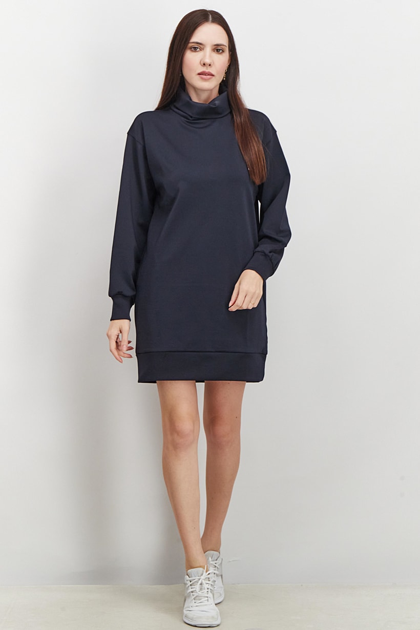 Care : Machine washable, Fit : Regular fit, Size shown : International, Types of Hem : Straight hem, Types of Neckline & Collar : Turtle neckline, Types of Sleeve : Longsleeve, Disclaimer : Product color may slightly vary due to photographic lighting sources or your monitor settings., Fabrics : 94% Polyester, 6% Elastane, Occasion : Casual, Pattern & Print : Plain/Solid, Types of Closures : Pullover, Dress Style : Sweater Dress, Color Family : Black,