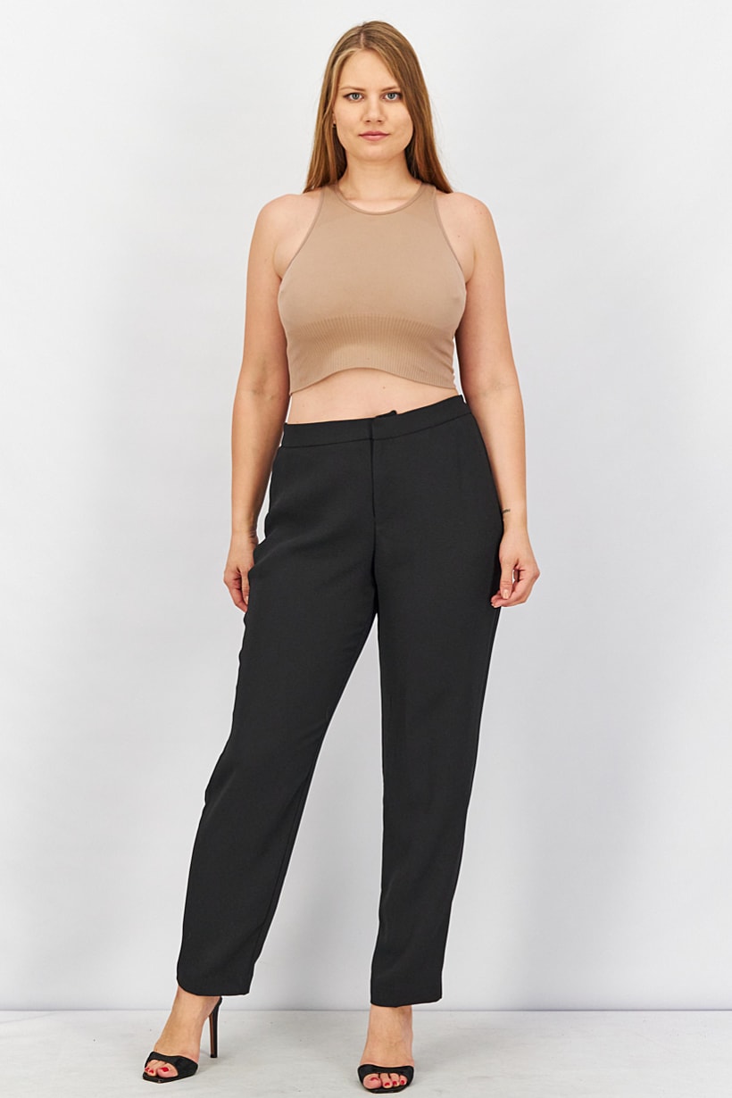 | nameOriginal | Women Plus Size Solid Trouser Pants, Black |