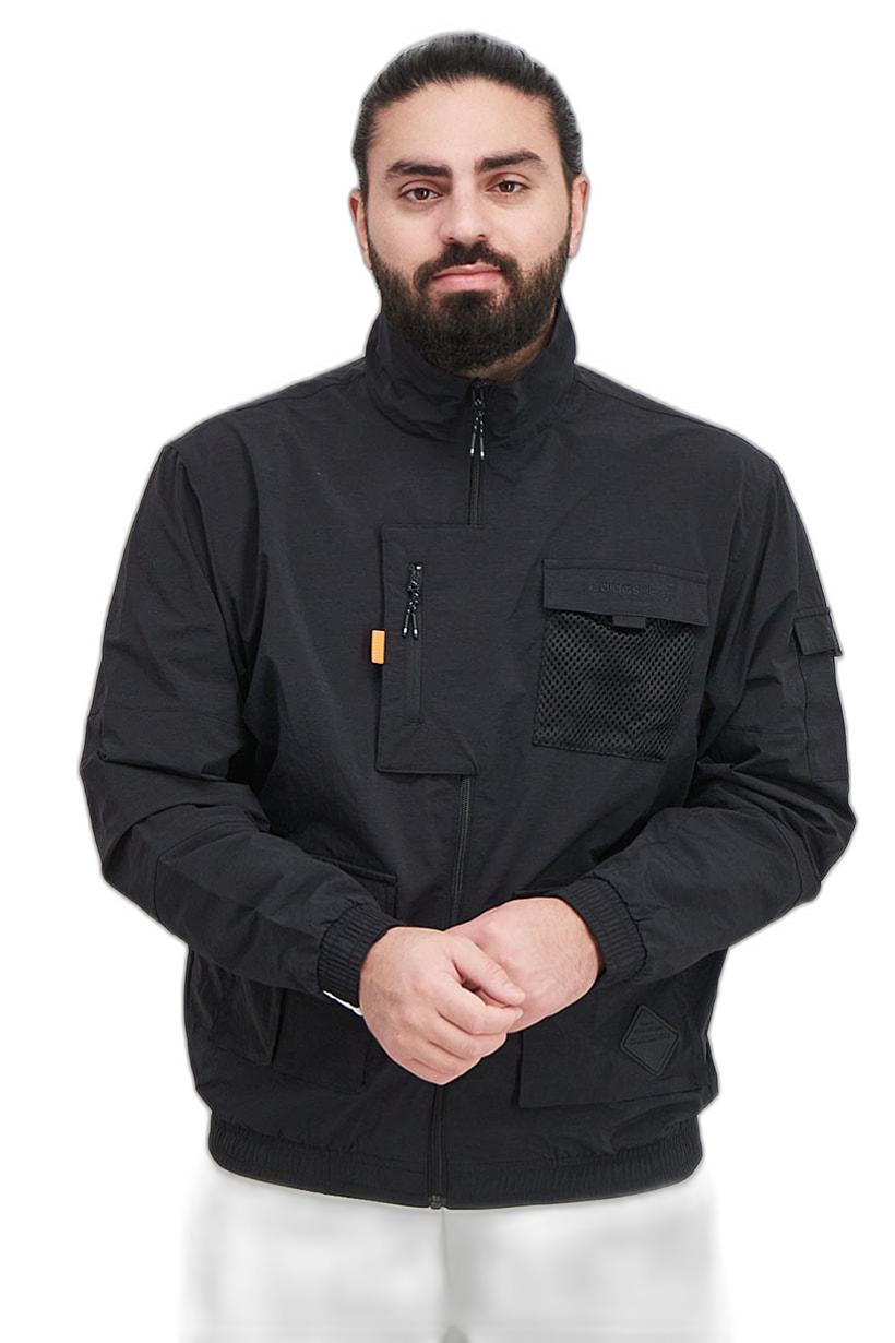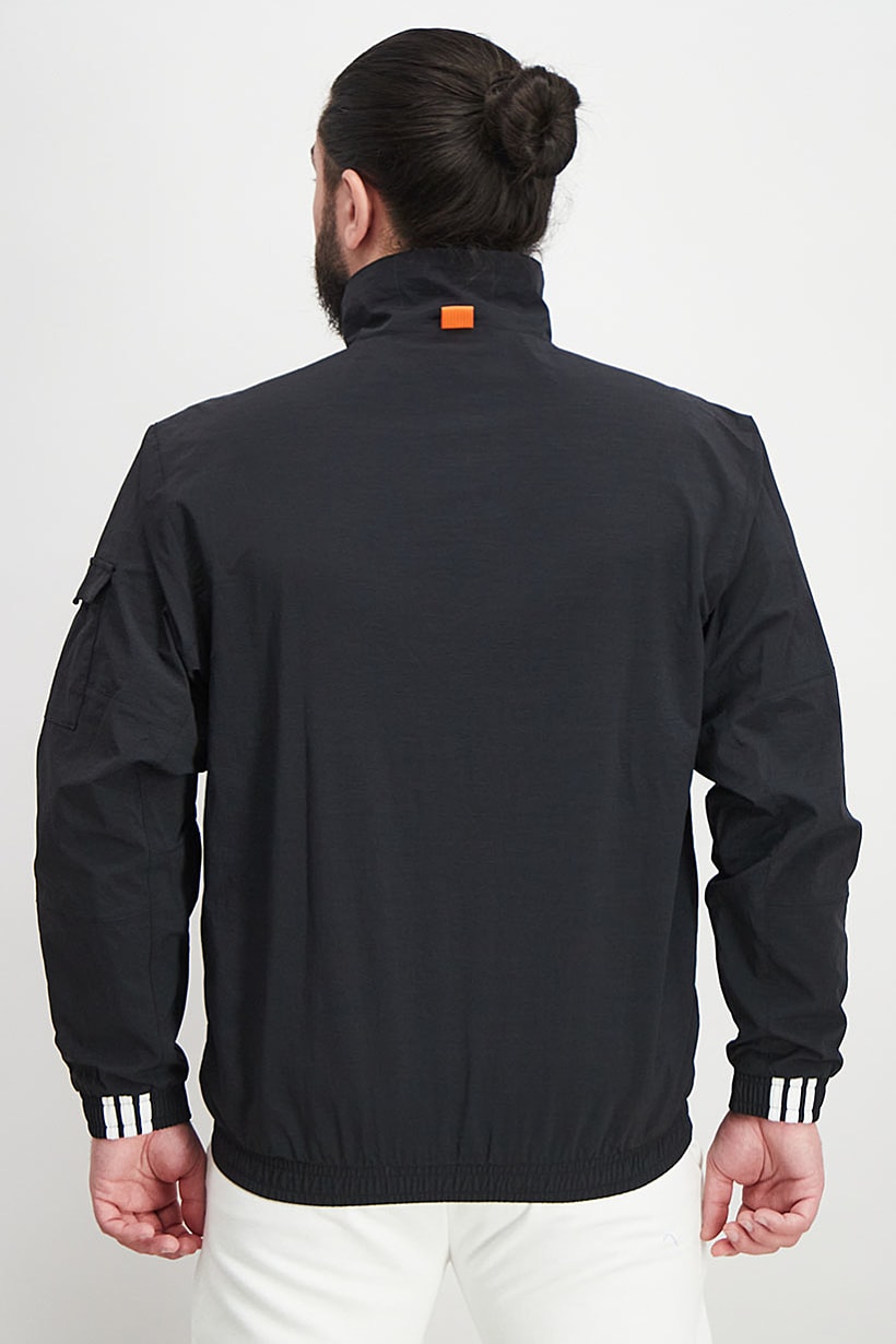 Black Sport Fit Jacket with Mock Neck and Brand Logo for Men’s Long Sleeve.