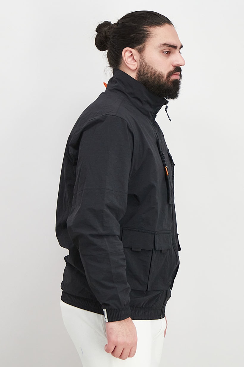 Bottom Hem : Straight, Care : Machine washable, Fit : Sportswear Fit, Size shown : International, Sleeve Length : Long Sleeve, Thickness : Light, Type of Neckline & Collar : Mock neckline, Type of Sport : Training, Fabrics : 100% Polyester, Pattern & Print : Brand Logo, Sportswear Type : Jackets, Types of Closures : Zipper closure, Color Family : Black,