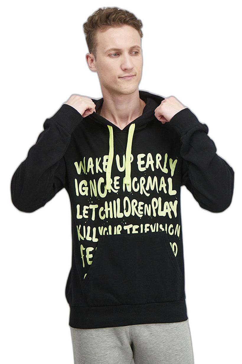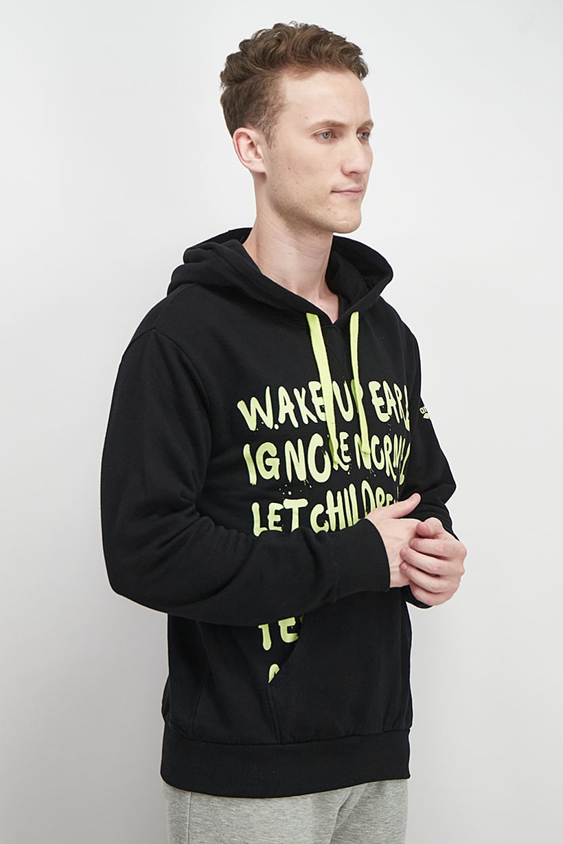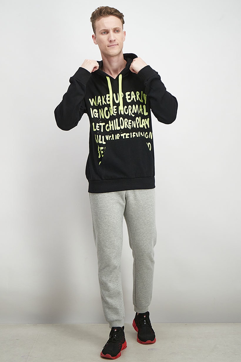 | sub_Categories | Men Clothing, Sportswear, men drawstring hooded slogan graphic print sport sweatshirt black |