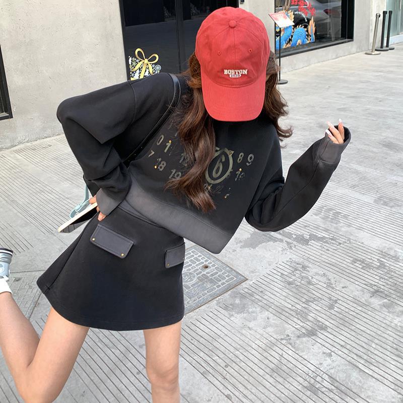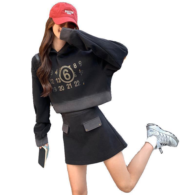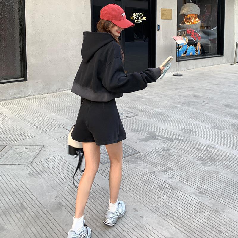 | nameOriginal | Black Sports Hooded Sweat Set Women's Spring 2024 New Arrival Small Top Shorts Casual Two-Piece Trendy Set |
