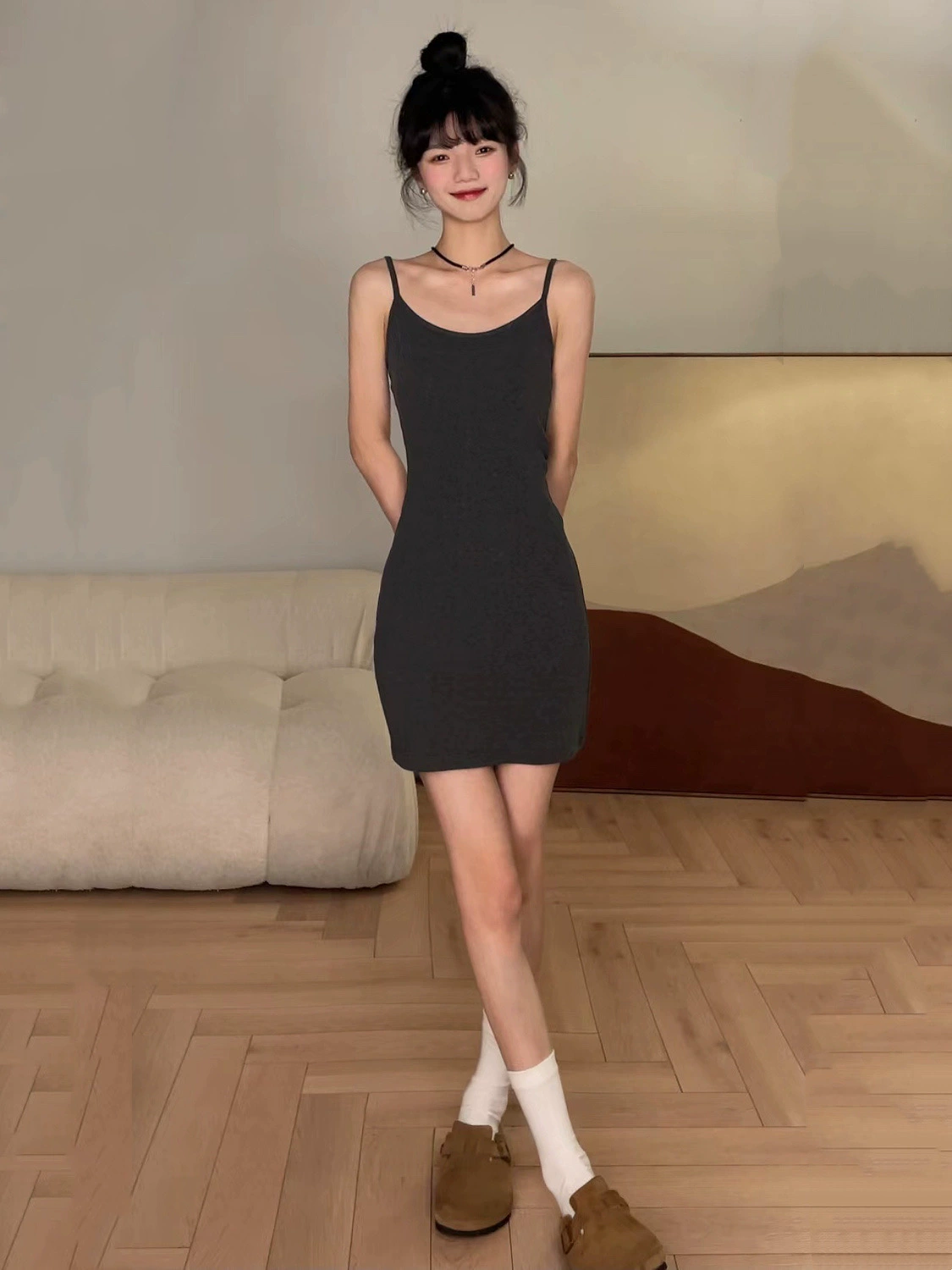 | nameOriginal | Black spring and autumn bottoming hip-hugging slim suspender skirt |