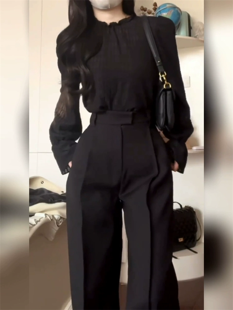 | nameOriginal | Black spring and summer high-waisted loose niche floor-length suit pants |