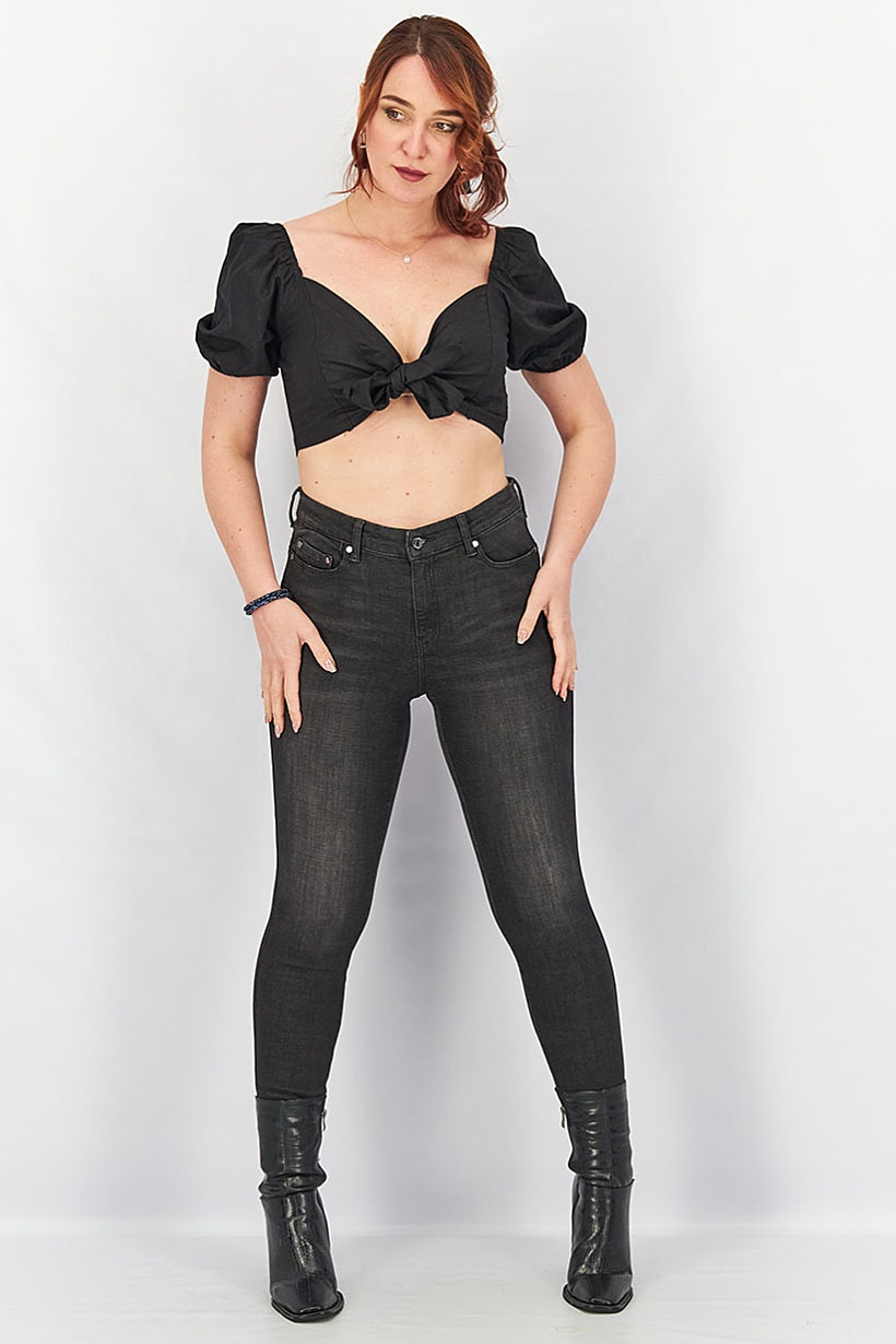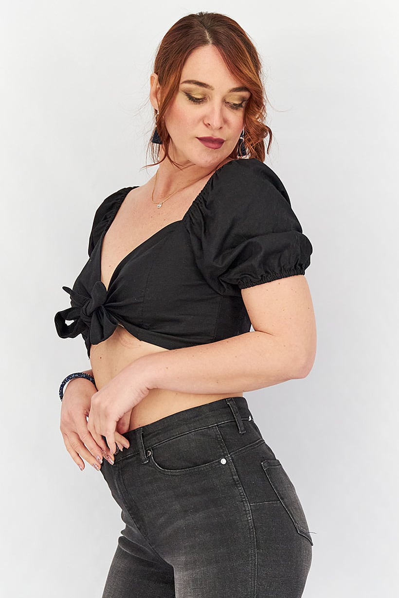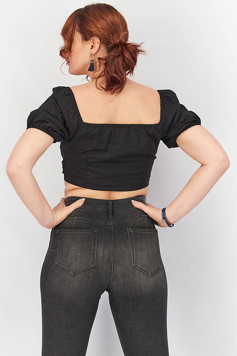 | nameOriginal | Women Square Neck Puffed Sleeve Crop Top, Black |